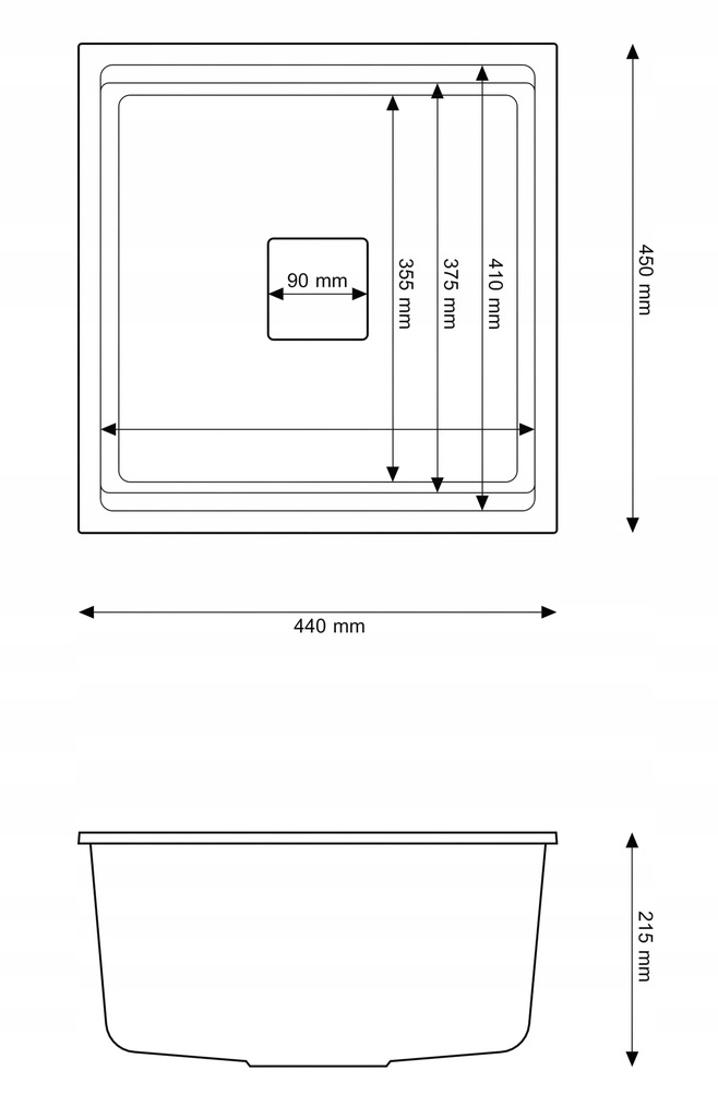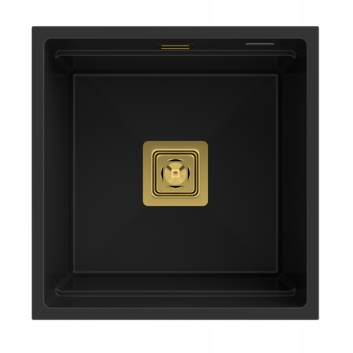 Chiuvetă Granit Neagră Montare Sub Blat Sifon Pătrat Auriu EPIR 44