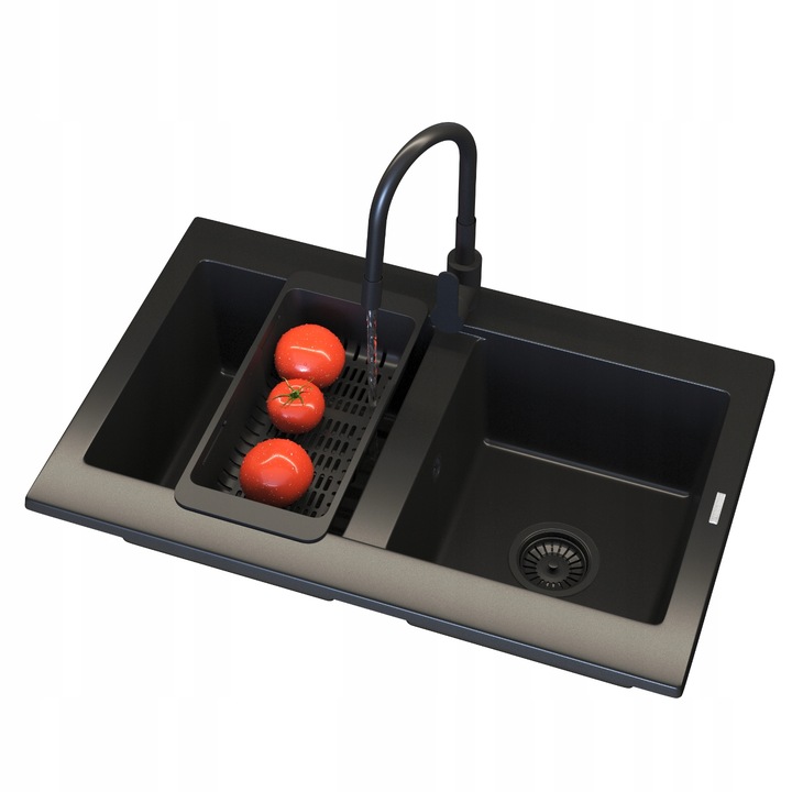 Chiuvetă Bucătărie Granit Neagră VERSO Baterie Coș Sifon