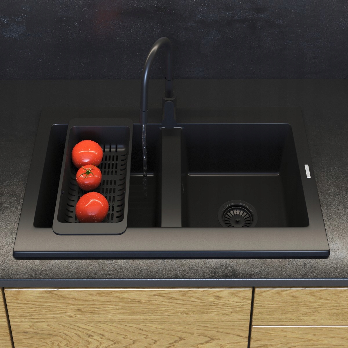 Chiuvetă Bucătărie Granit Neagră VERSO Baterie Coș Sifon