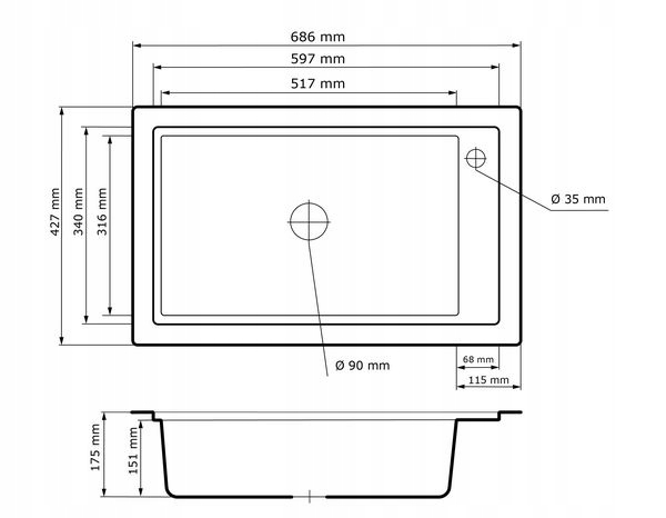 Există și opțiunea achiziționării chiuvetei fără găuri realizate.