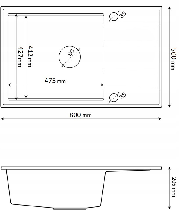 Există, de asemenea, opțiunea achiziționării chiuvetei fără găuri realizate.