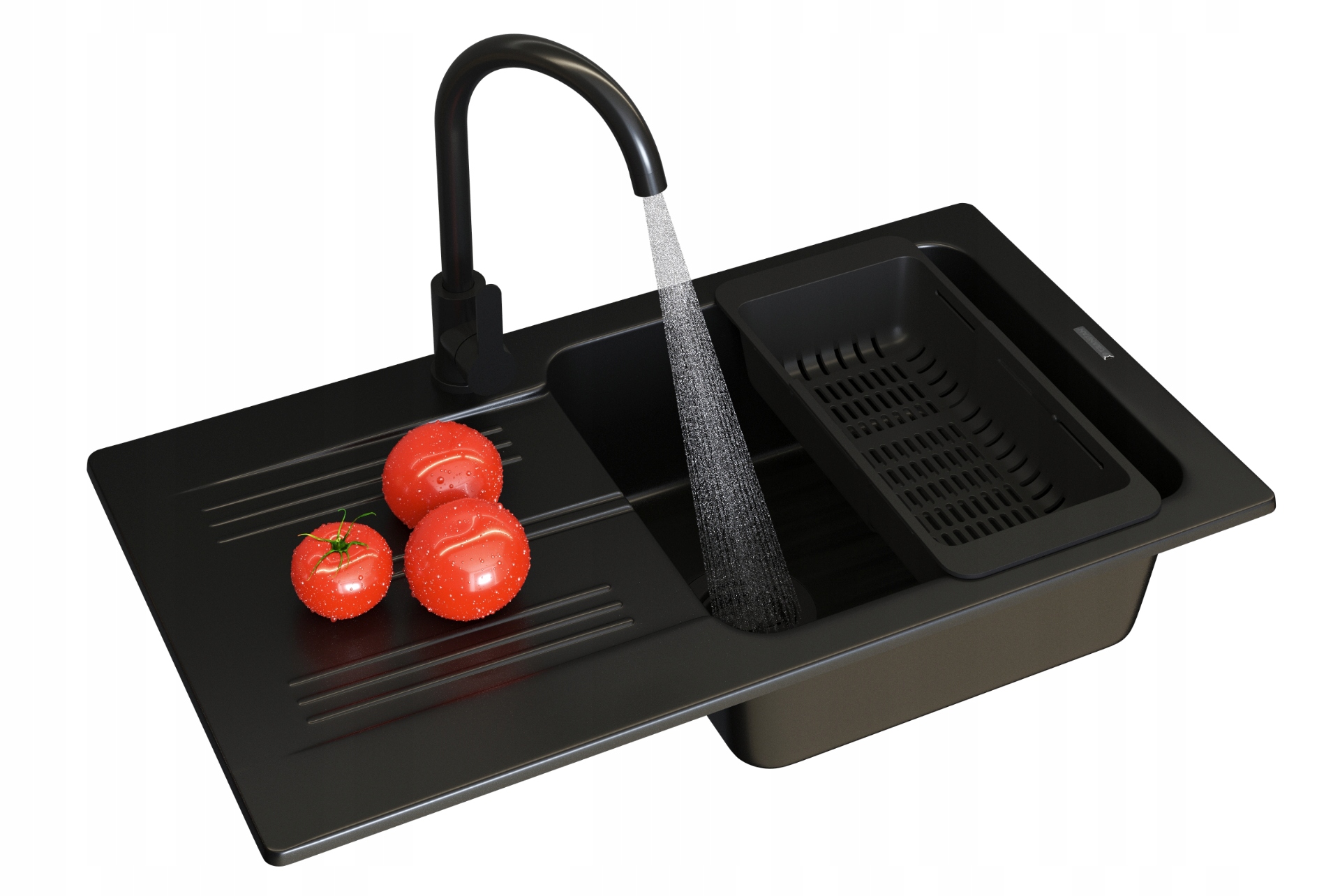 Chiuvetă Granit ADA cu O Cuvă Neagră, Baterie și Sifon