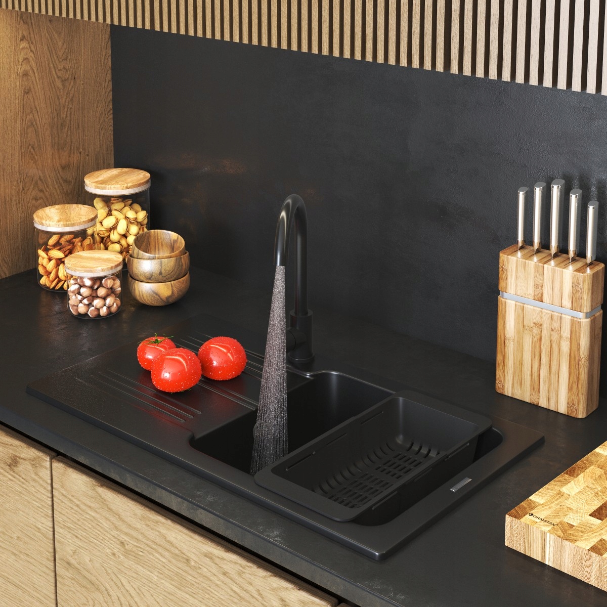 • Baterie de bucătărie PRESTIGE PLUS în culoare NEAGRĂ