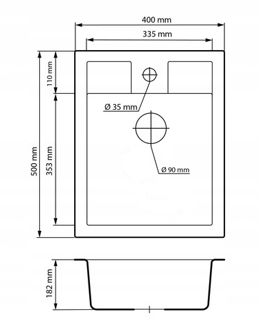 Material: 80% compozit granit, 20% rășină poliester-acrilică dedicată