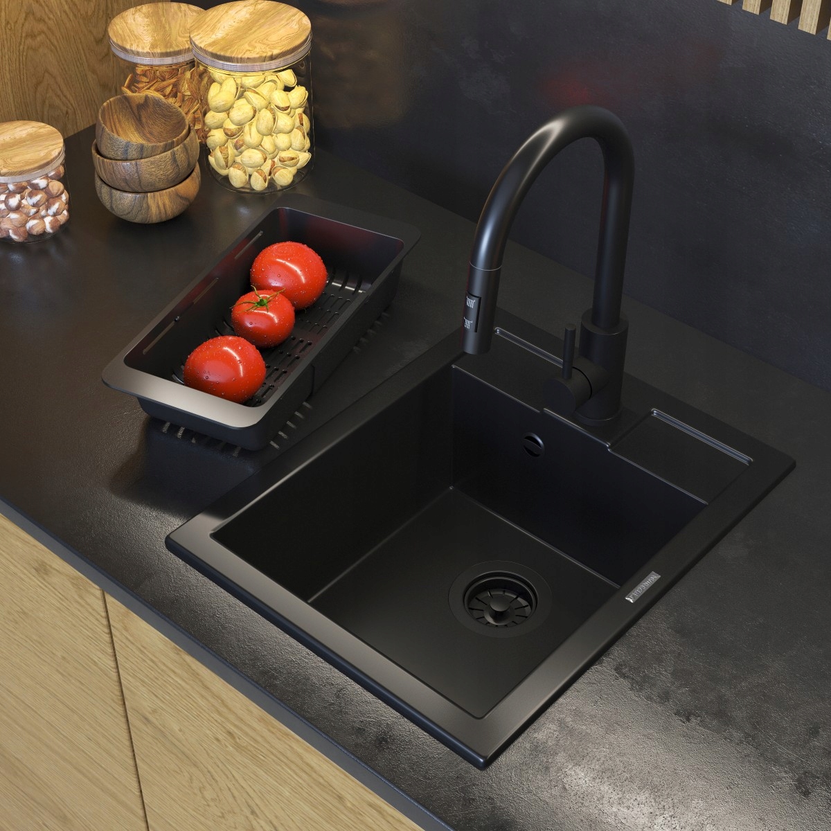 Chiuvetă granit BEST negru set baterie LOSETO sifon scurgător