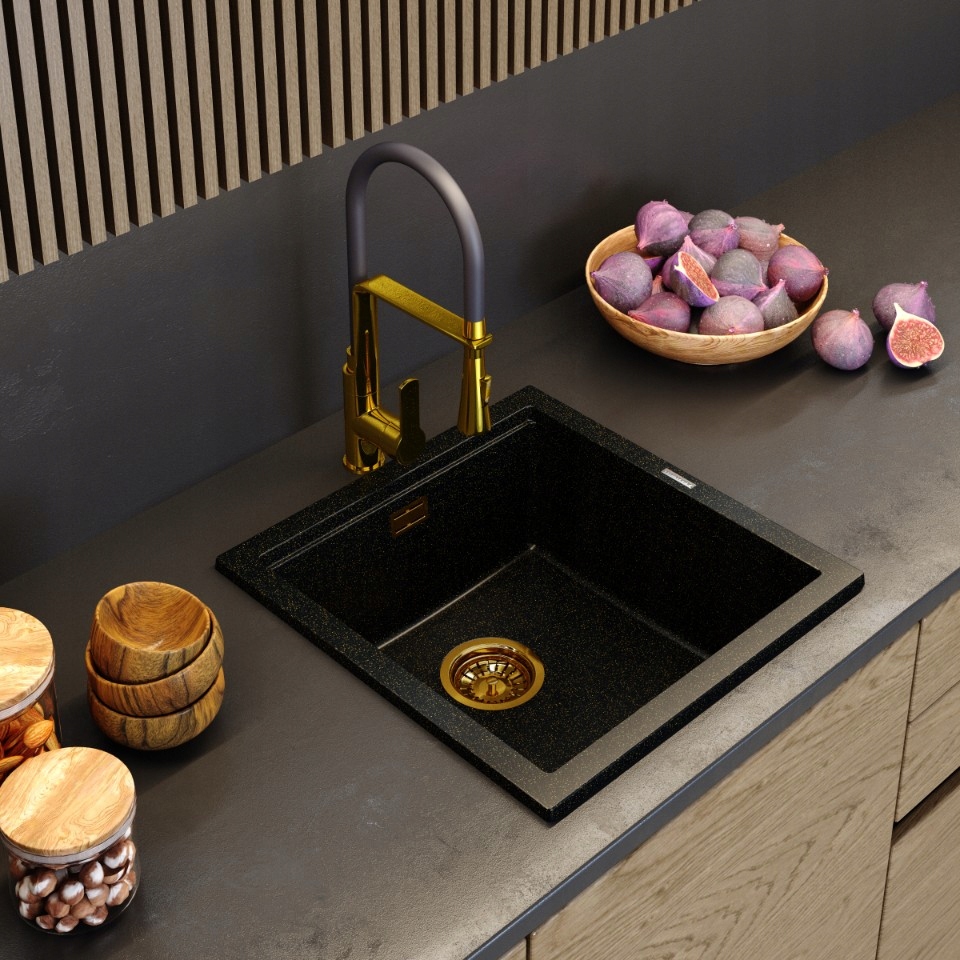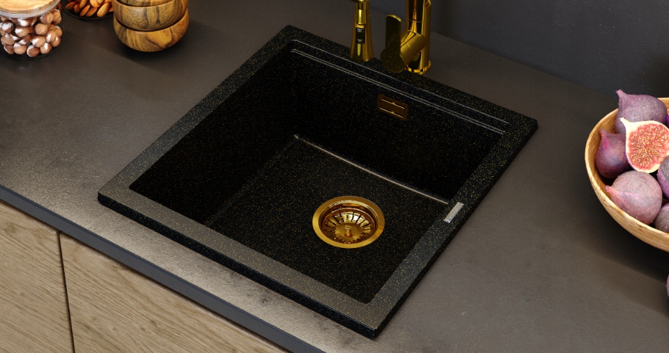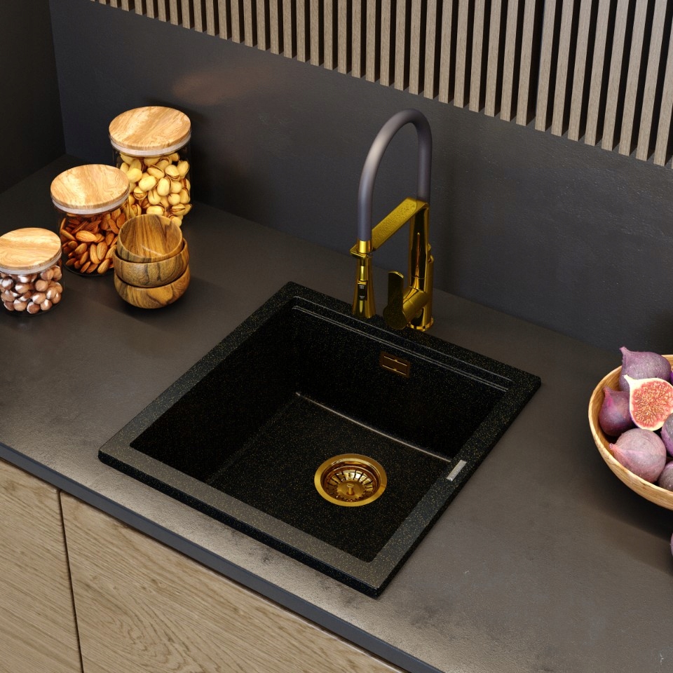 Chiuvetă granit cu particule aurii TUGA48 Gold