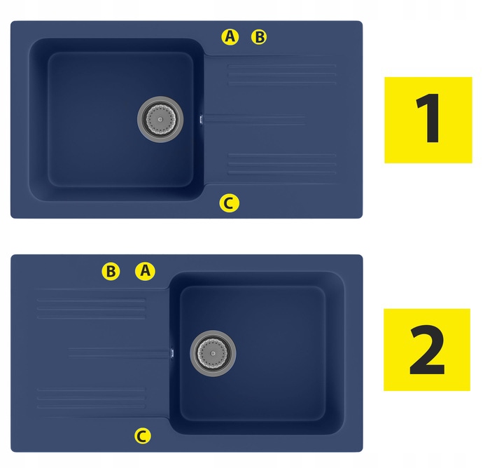După achiziție, vă rugăm să specificați locațiile pentru realizarea găurilor și partea cuvei în secțiunea de observații a comenzii.