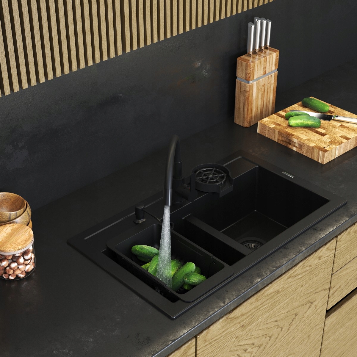 Chiuveta din granit Duet este soluția ideală pentru cei care apreciază estetica și durabilitatea. Datorită celor două cuve funcționale, spălarea veselei, fructelor și legumelor va deveni mai comodă ca niciodată.
