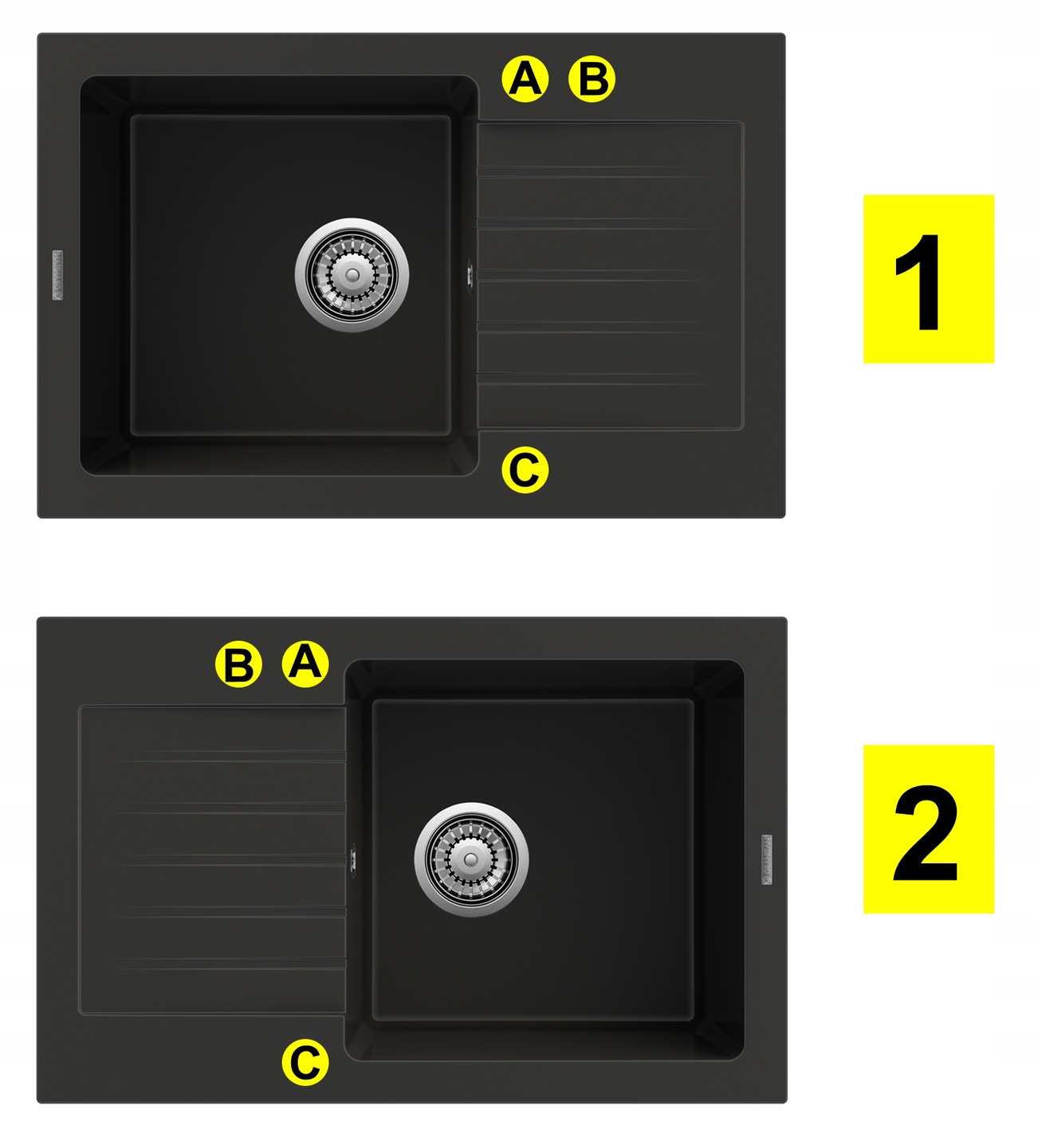 Forma universală permite alegerea amplasării camerei chiuvetei – pe partea dreaptă sau stângă – în funcție de preferințele individuale.