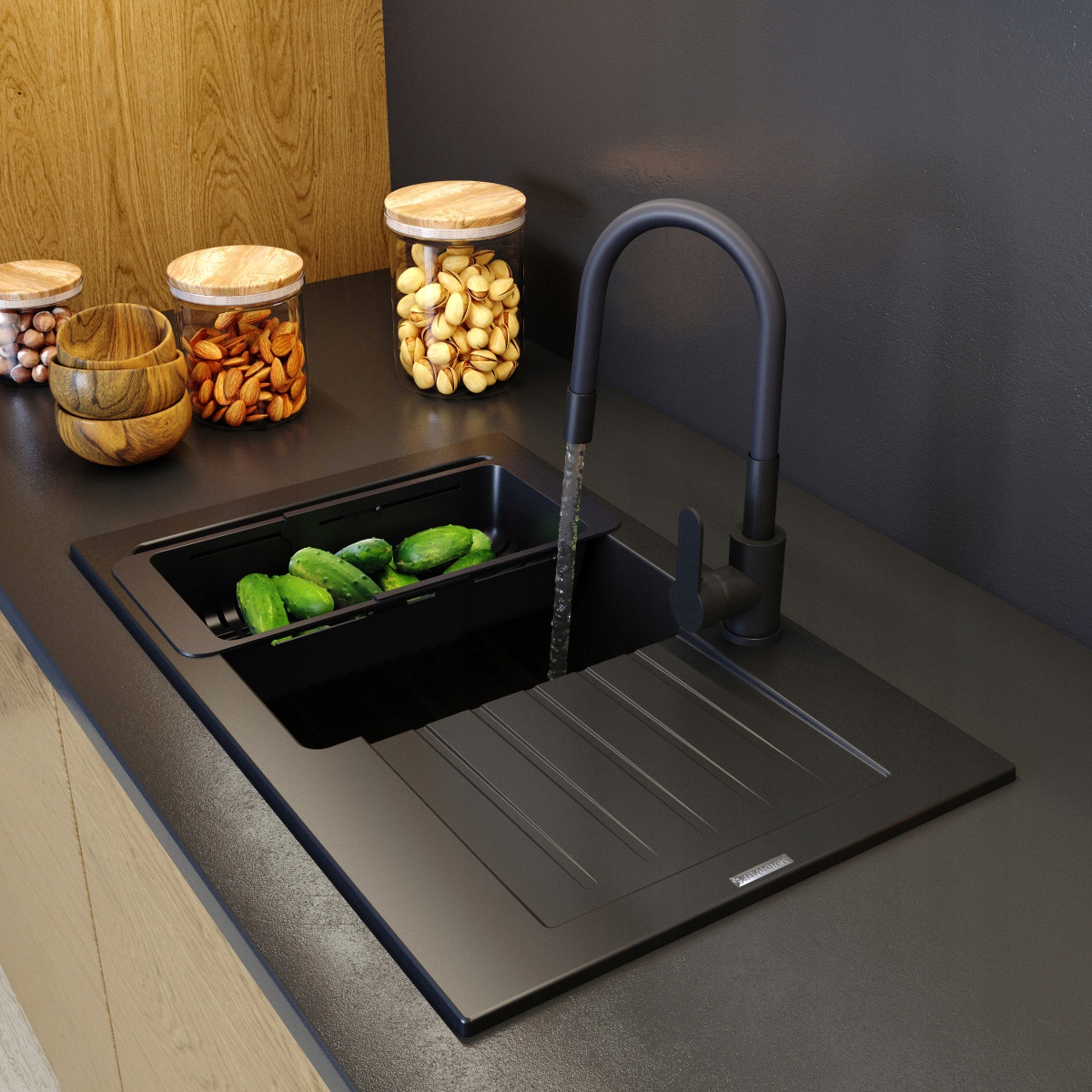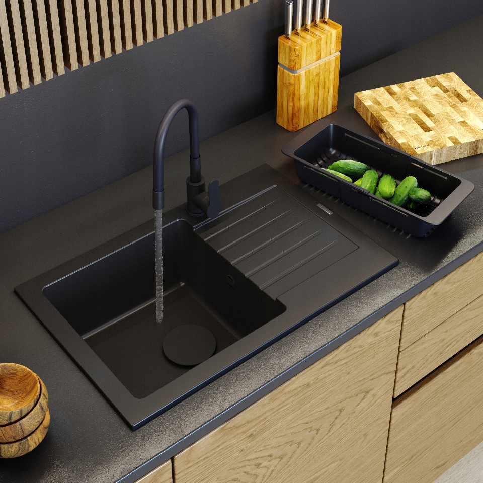 Chiuvetă granit neagră baterie bucătărie coș capac set Mino All in One