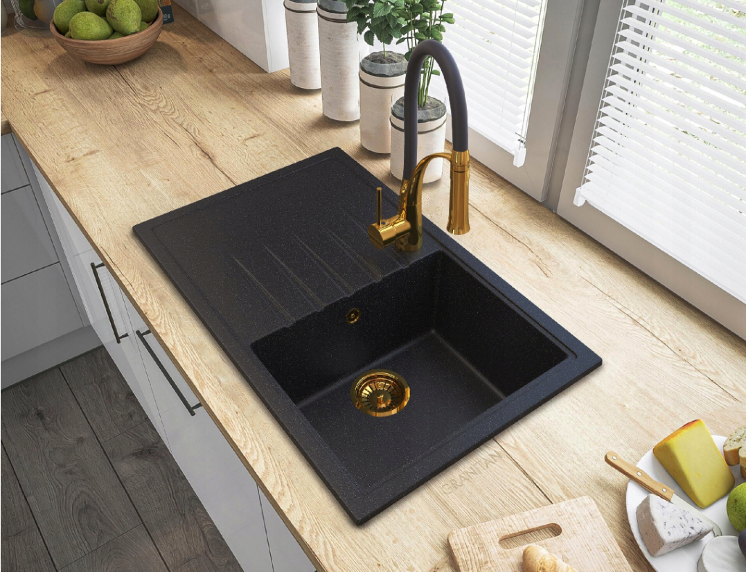 0 OPINII PENTRU Chiuvetă granit neagră cu particule aurii ERIS