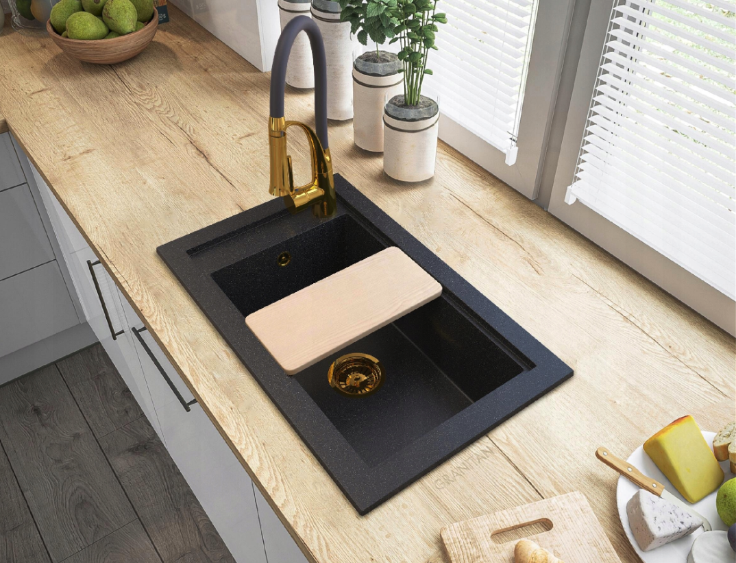 Chiuvetă granit neagră cu particule aurii PANAMA