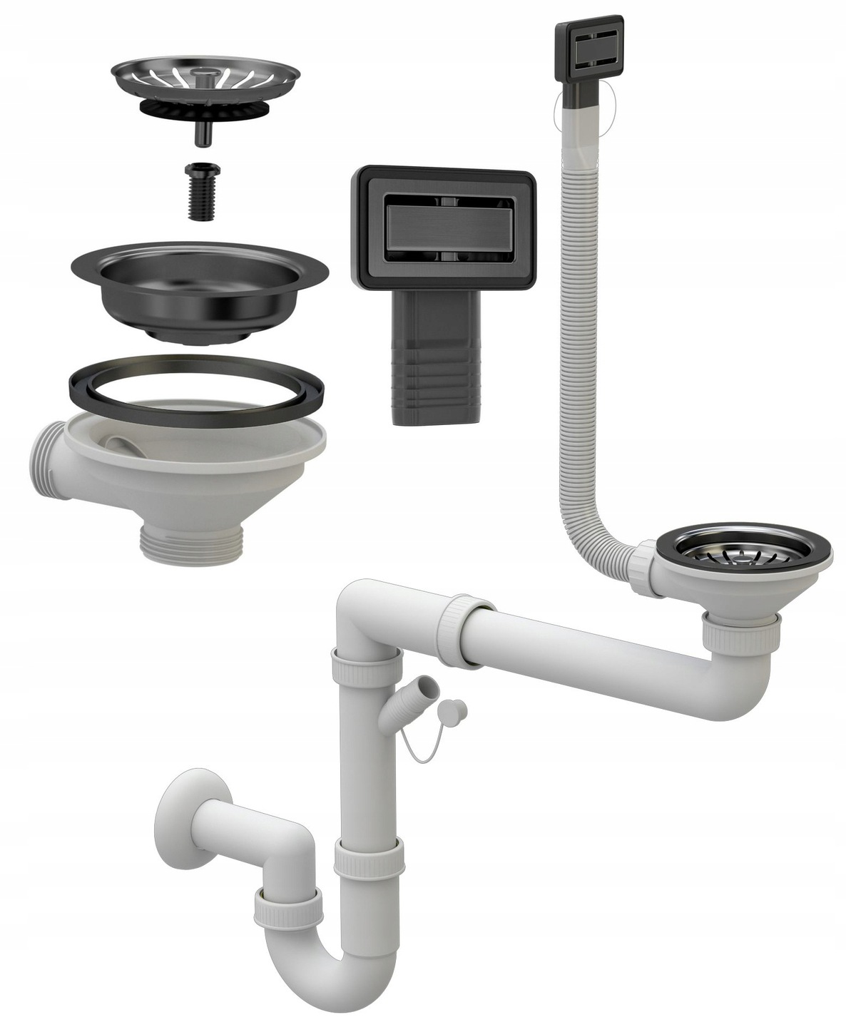 Sifon manual cu preaplin dreptunghiular NEGRU cu posibilitate de conectare a mașinii de spălat vase sau rufe (economisire de spațiu)