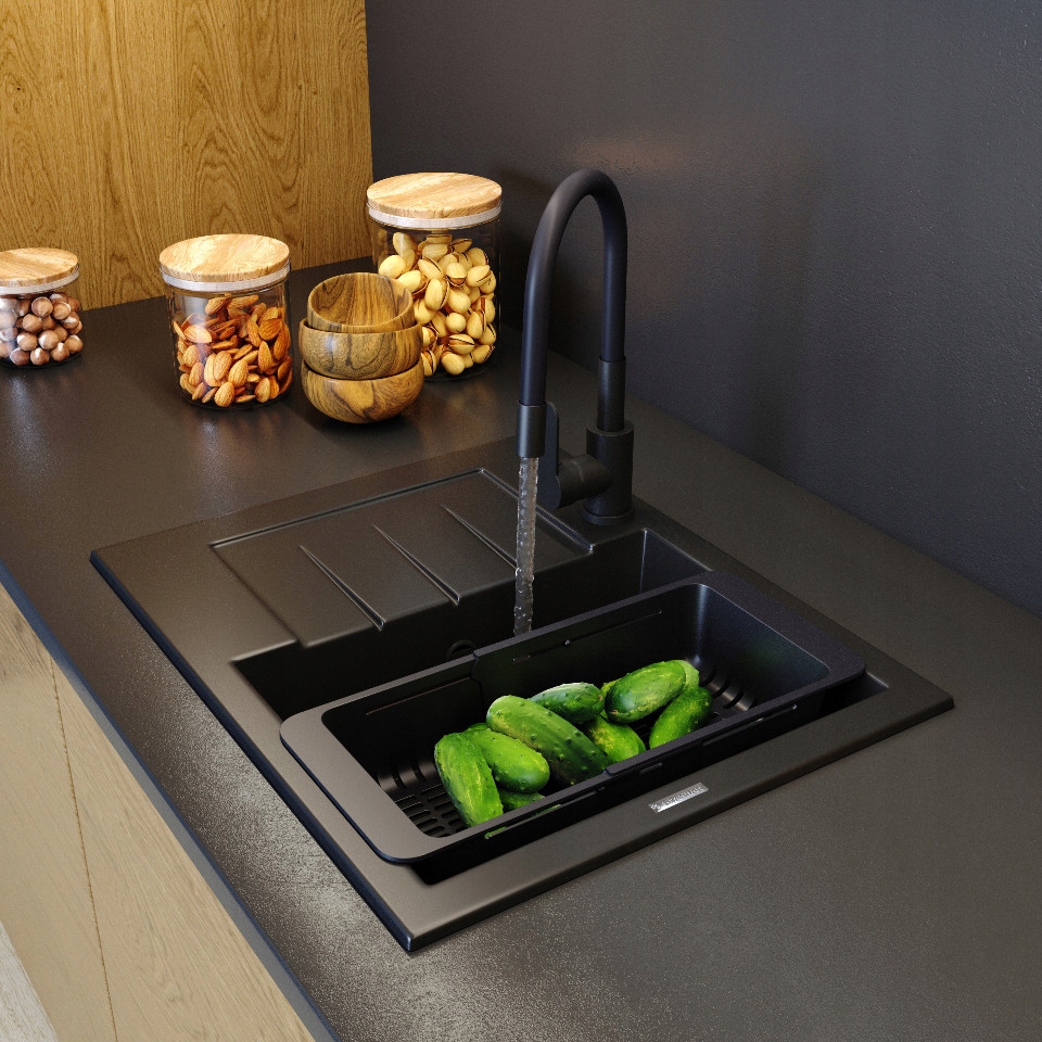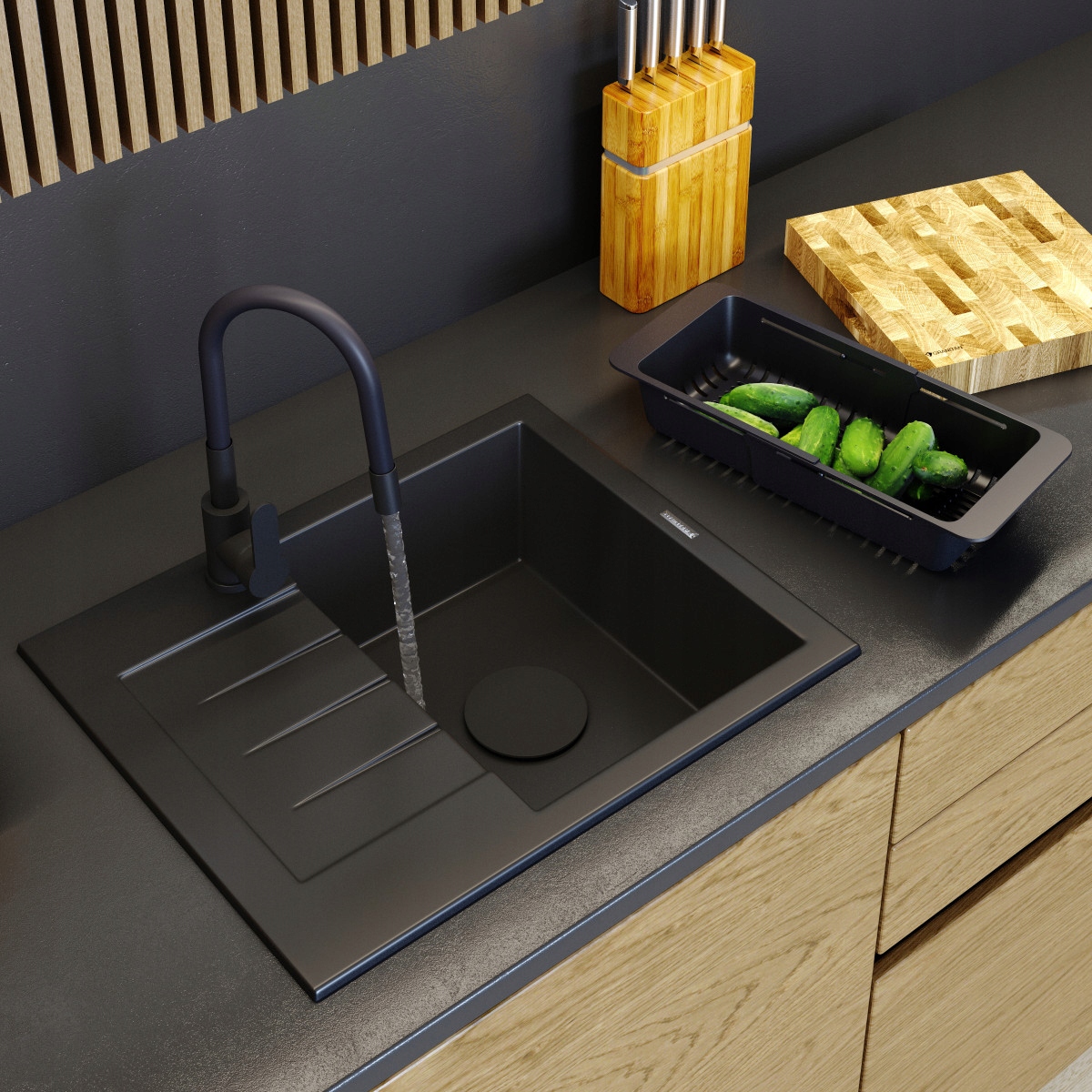 Chiuvetă Granit Negru Milano Set Complet Baterie Accesorii