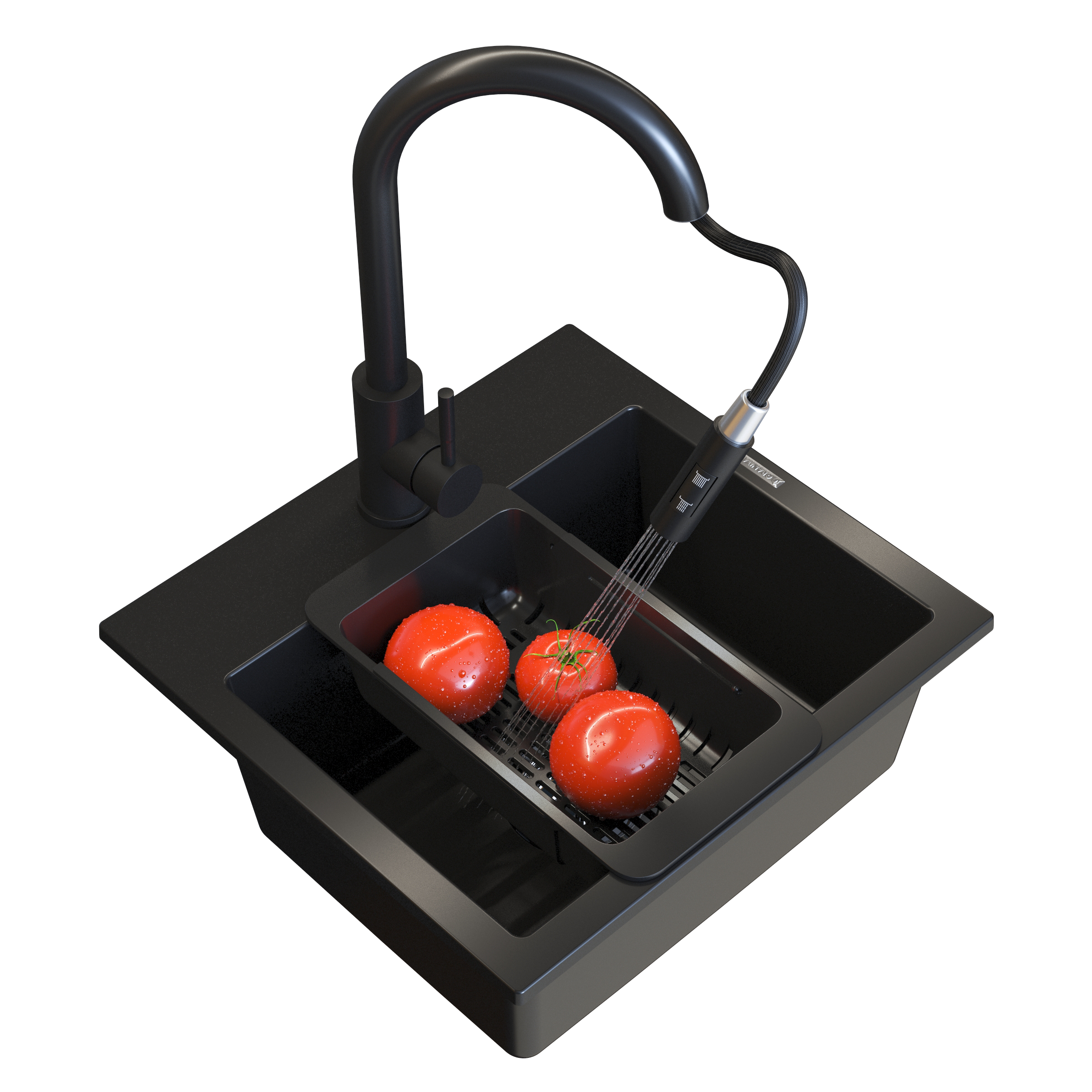 Chiuveta are un finisaj modern, mat, de culoare neagră intensă, care adaugă eleganță. Fabricată dintr-un material rezistent, se caracterizează prin rezistență la zgârieturi, temperaturi ridicate și produse chimice.