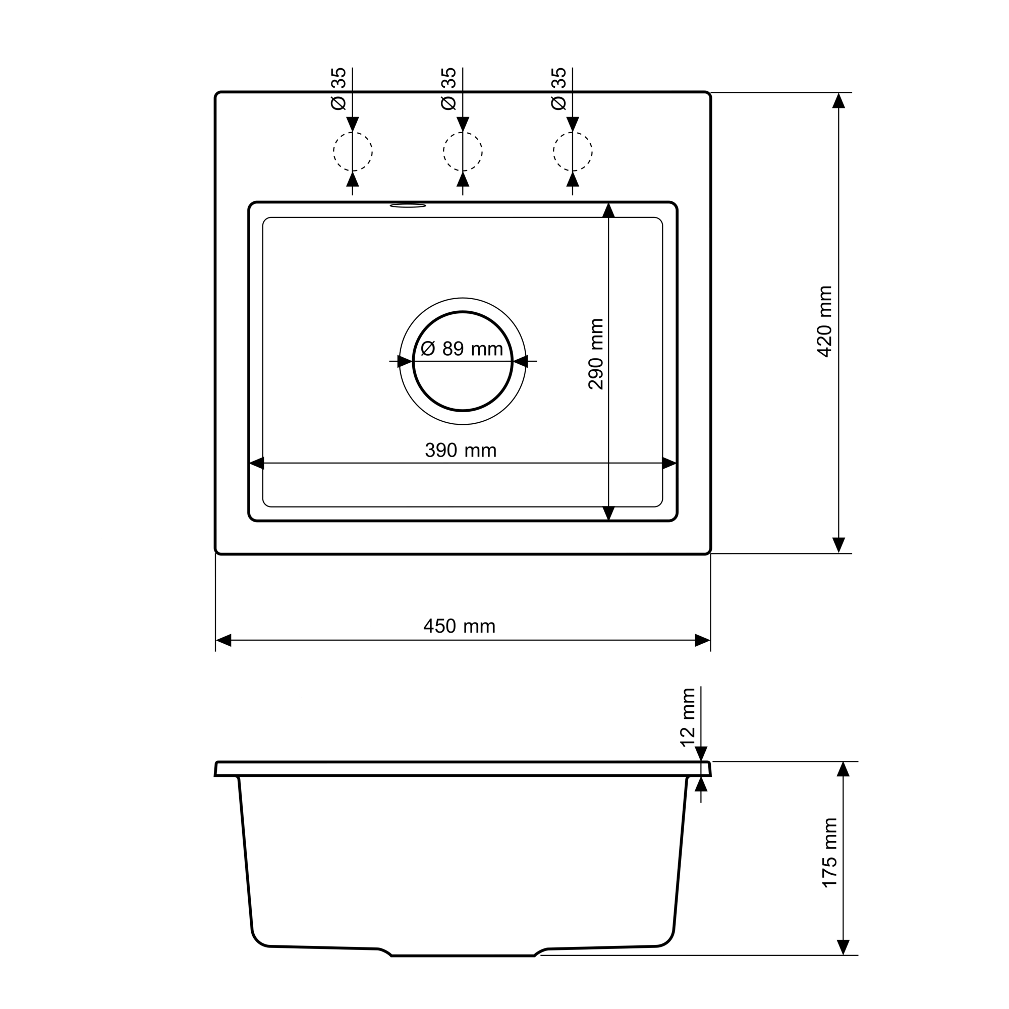 Chiuveta Tiny este un model minimalist cu dimensiuni compacte, ideal pentru bucătării mici, chicinete sau spații cu suprafață limitată.
