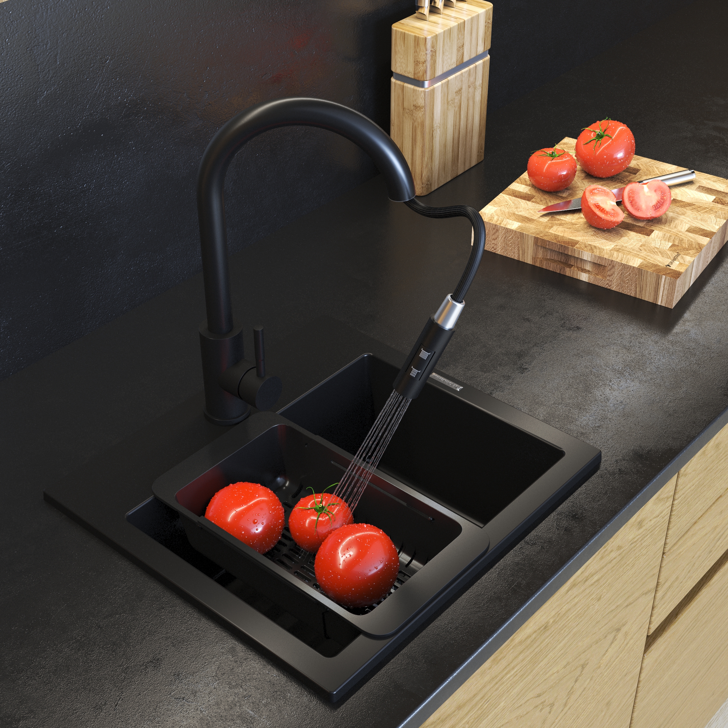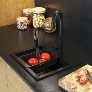Chiuveta are un finisaj modern, mat, de culoare neagră intensă, care adaugă eleganță. Fabricată dintr-un material rezistent, se caracterizează prin rezistență la zgârieturi, temperaturi ridicate și produse chimice.