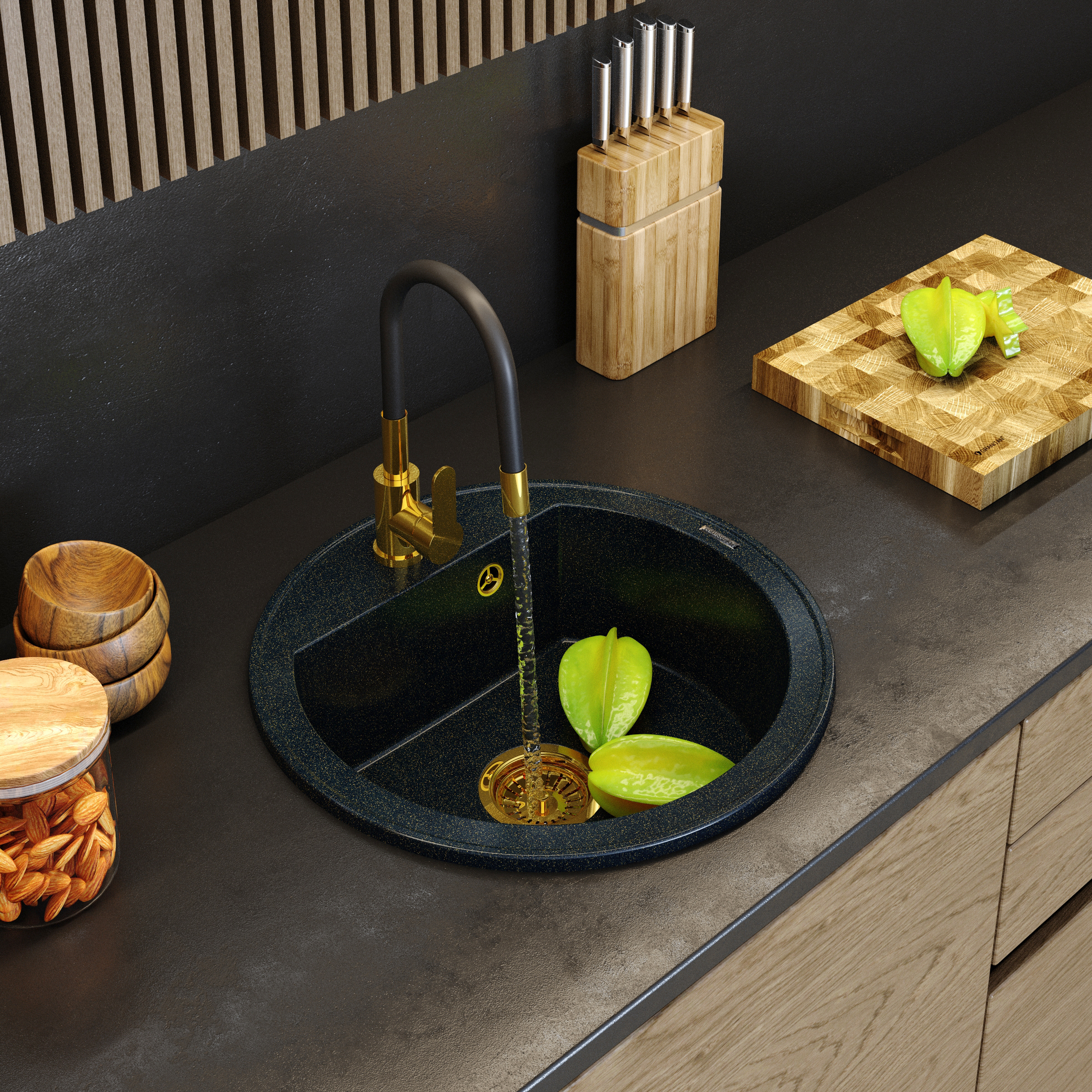 ARNO este o chiuvetă de bucătărie din granit de înaltă calitate, care se remarcă printr-o construcție rotundă.