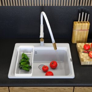 Zante este unul dintre modelele cele mai mari și mai adânci (20 cm) de chiuvete de bucătărie din granit cu o singură cameră.