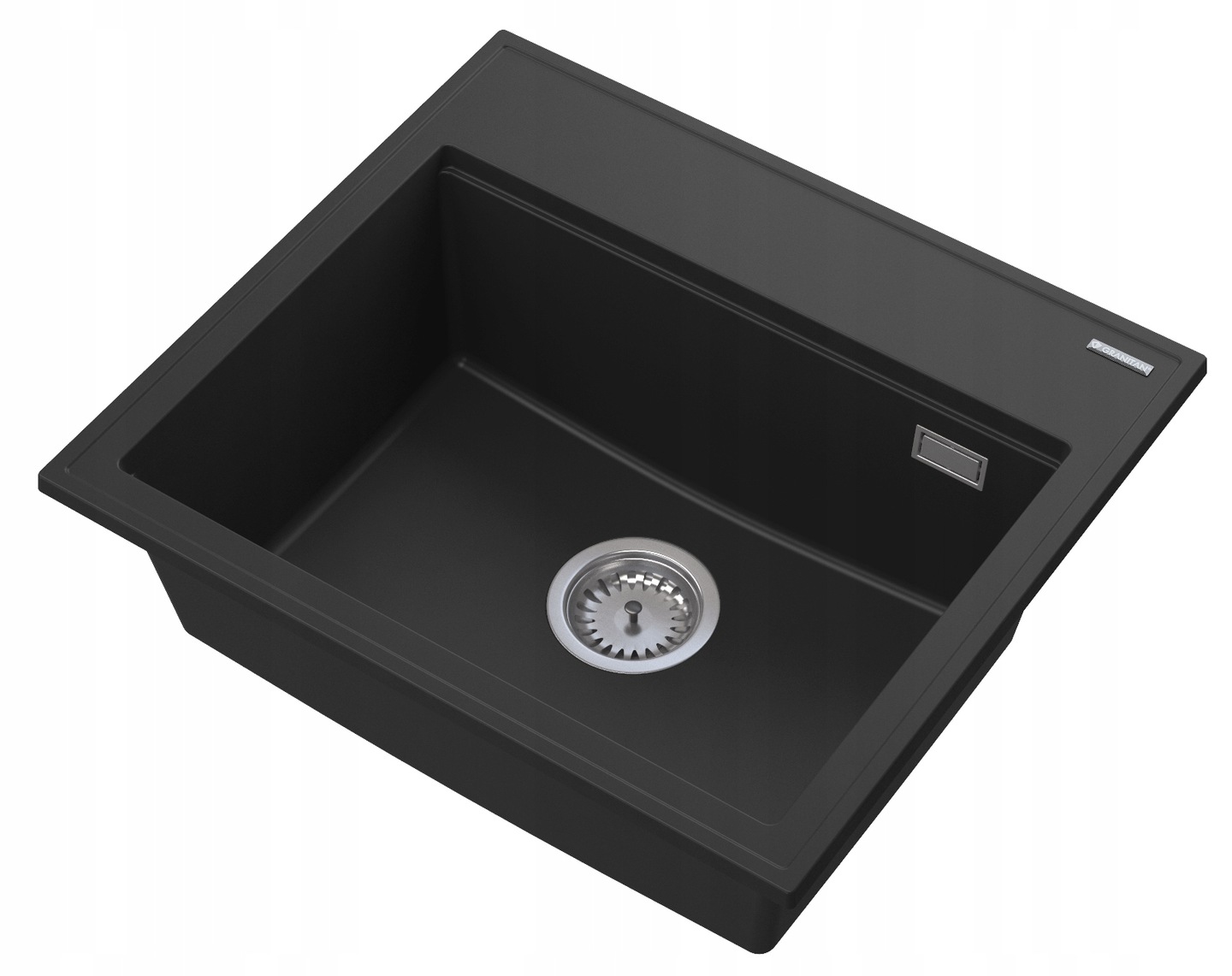 CHIUVETĂ din granit NEAGRĂ cu o singură cameră, SPĂLĂTOR pentru pahare și BATERIE FOXAL