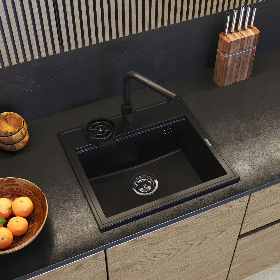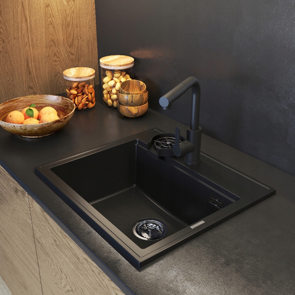 CHIUVETĂ din granit NEAGRĂ cu o singură cameră, SPĂLĂTOR pentru pahare și BATERIE FOXAL