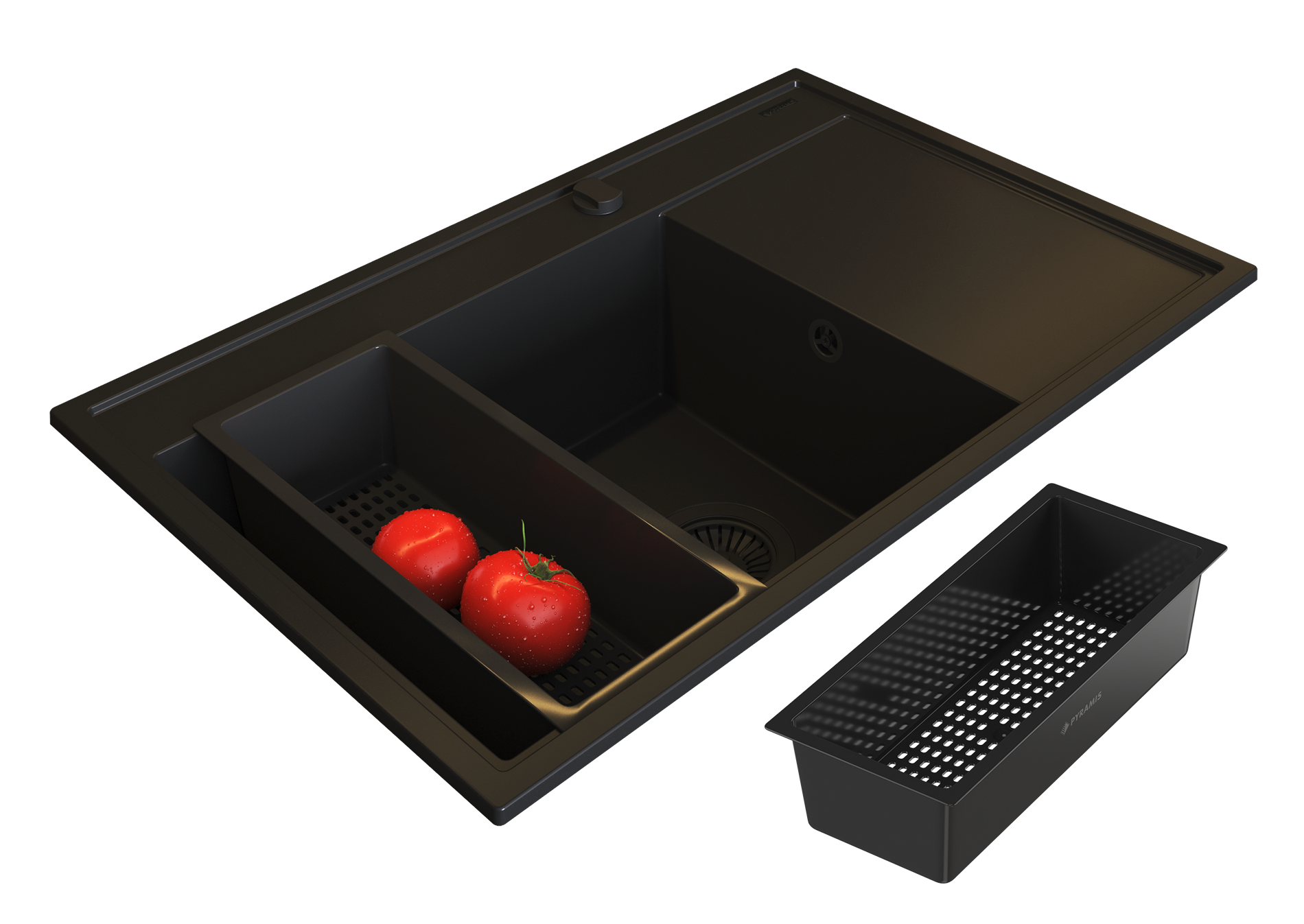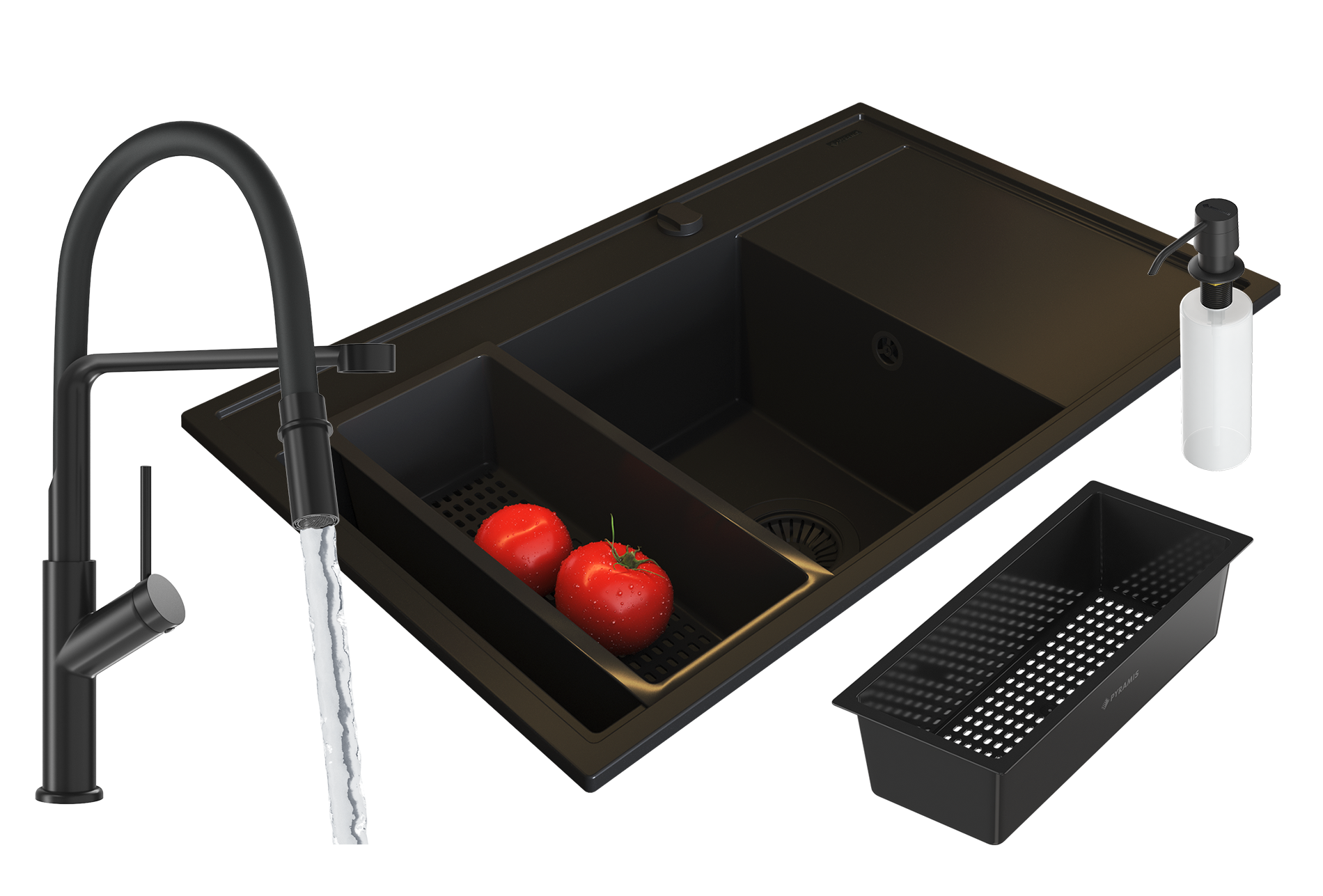 Chiuvetă Granit PYRAMIS CAMEA (79x50) Stânga Black Edition + Baterie FLEXOS