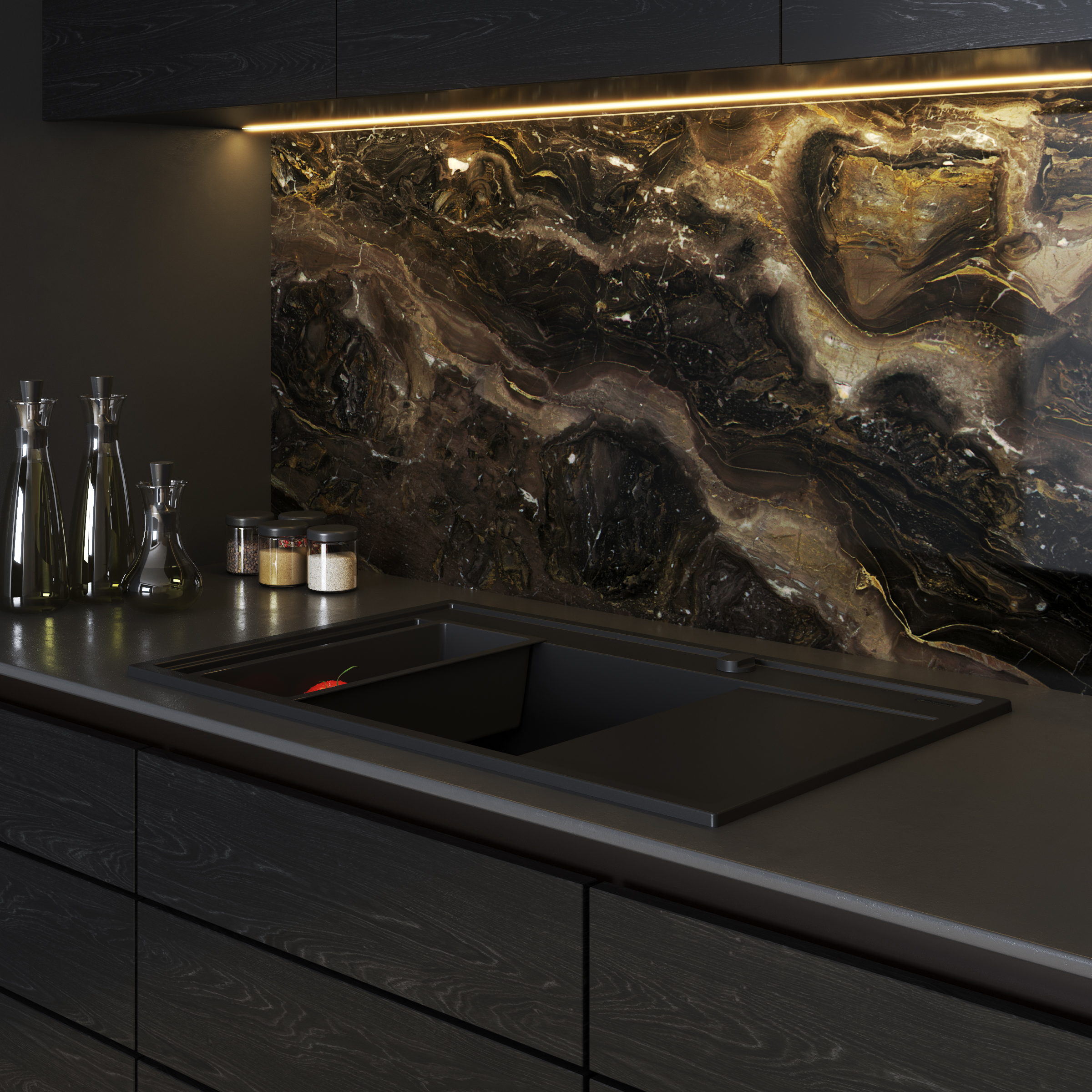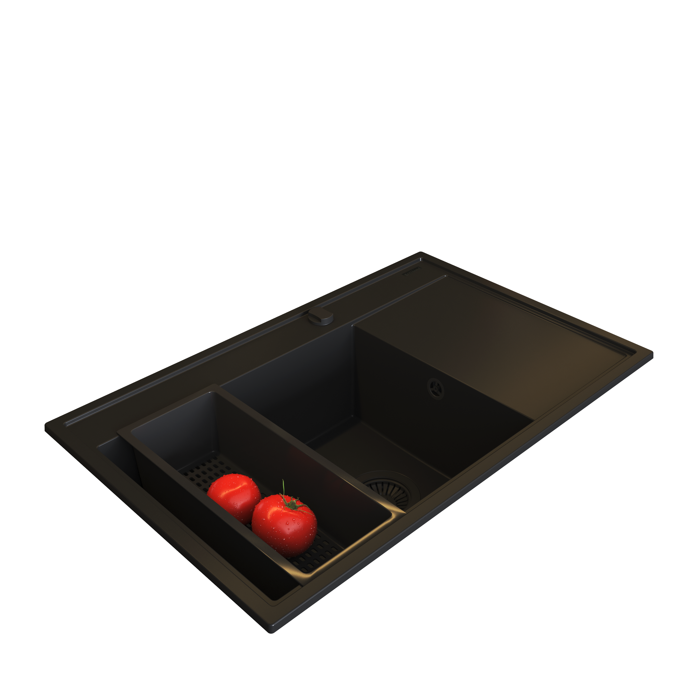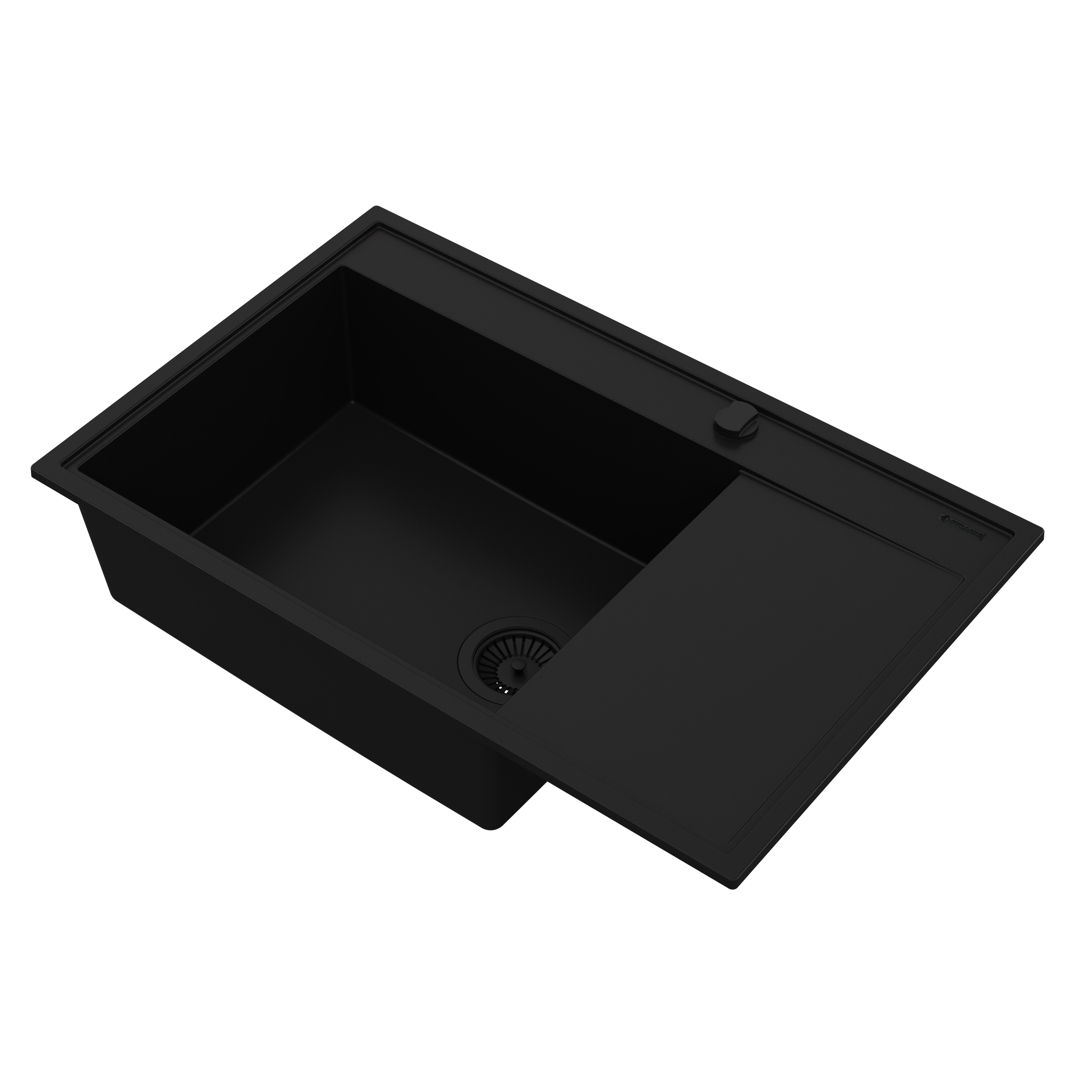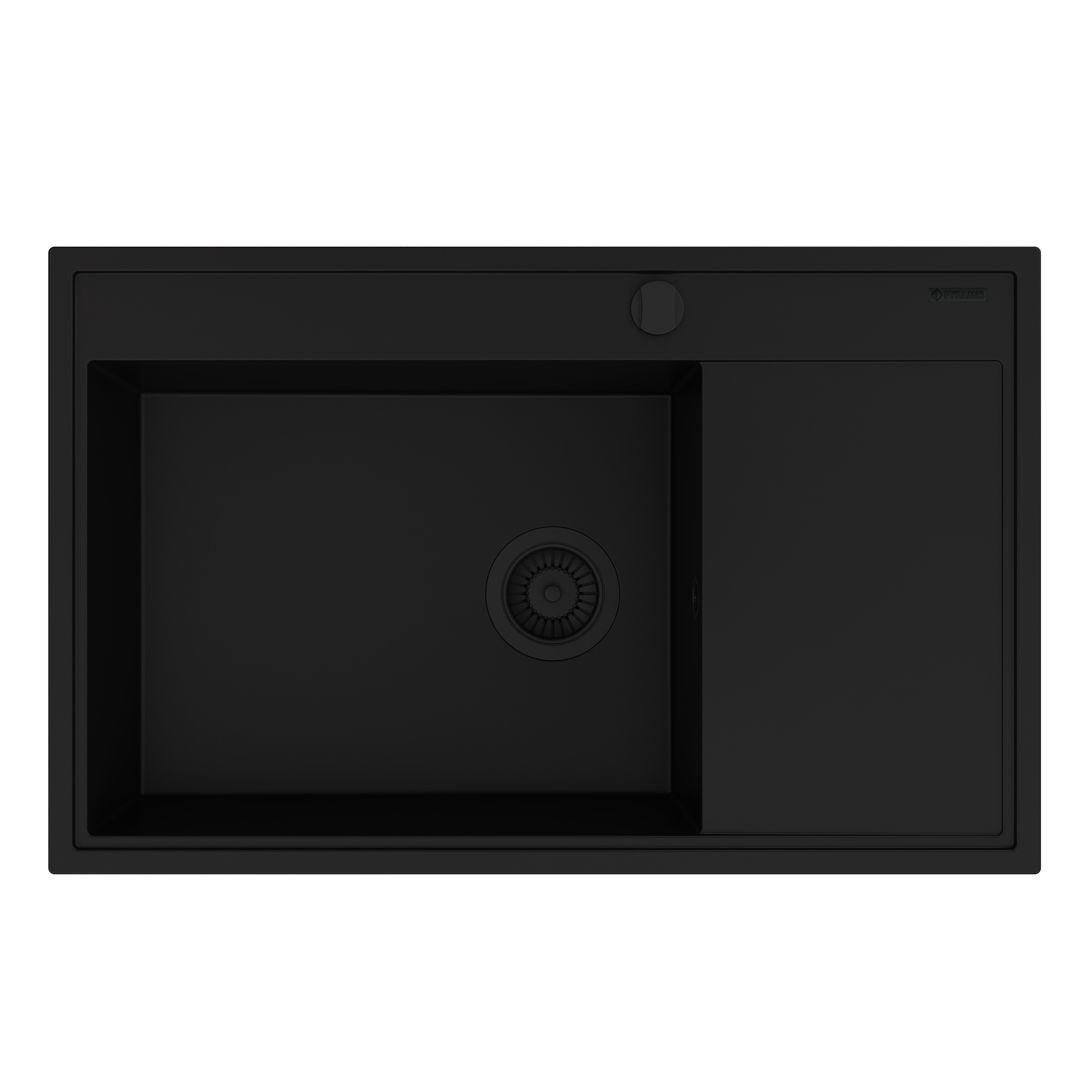 • CHIUVETĂ DE GRANIT CU O SINGURĂ CUVA ȘI DRENAJ CAMEA 79×50 VOLCANO (NEGRU MAT) CUVA STÂNGA BLACK EDITION