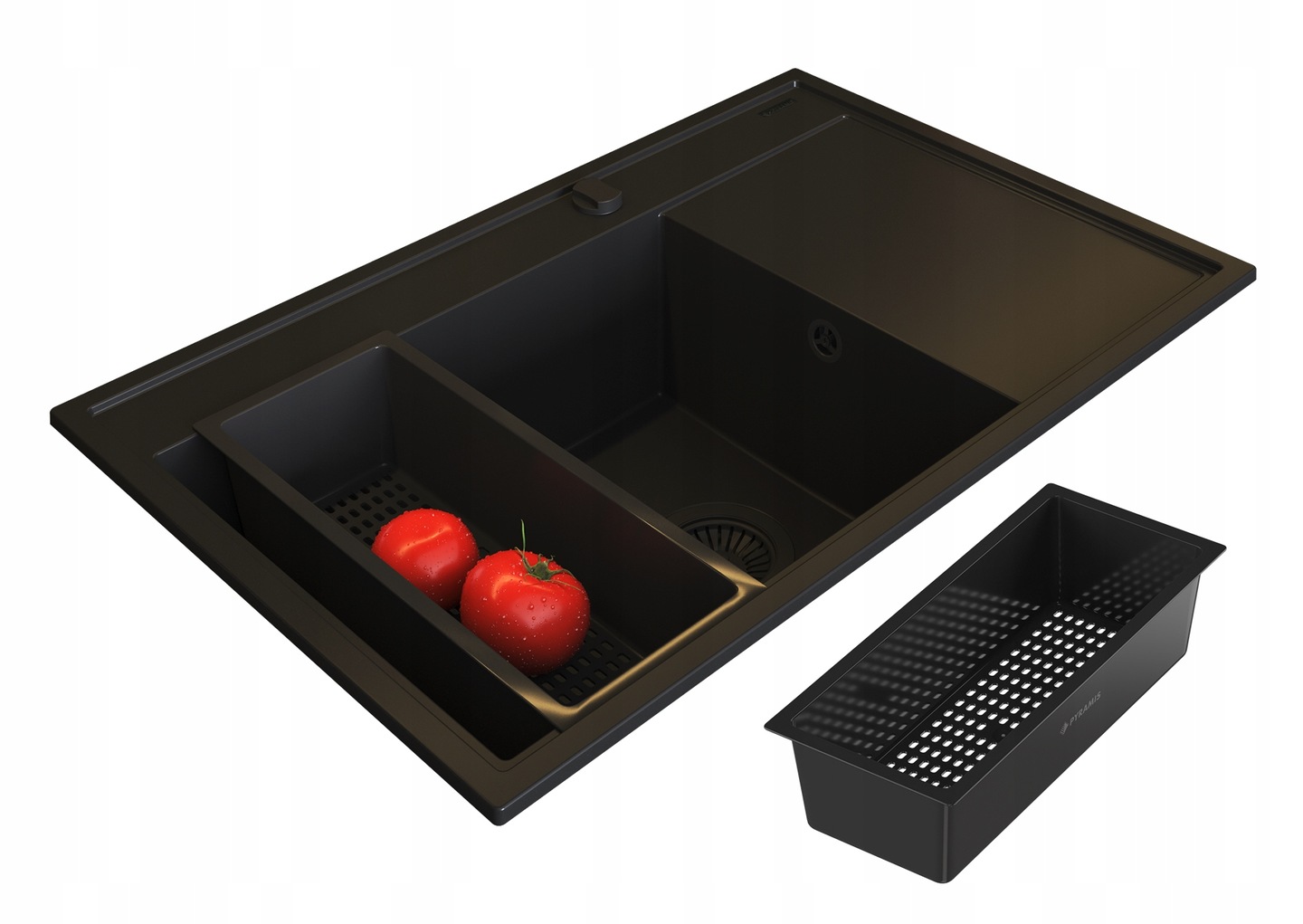 Prin dimensiune și formă, inserția BLACK EDITION se potrivește modelului Camea 79×50, iar paleta sa de culori este în armonie cu suprafața chiuvetei și alte accesorii de bucătărie din această serie.