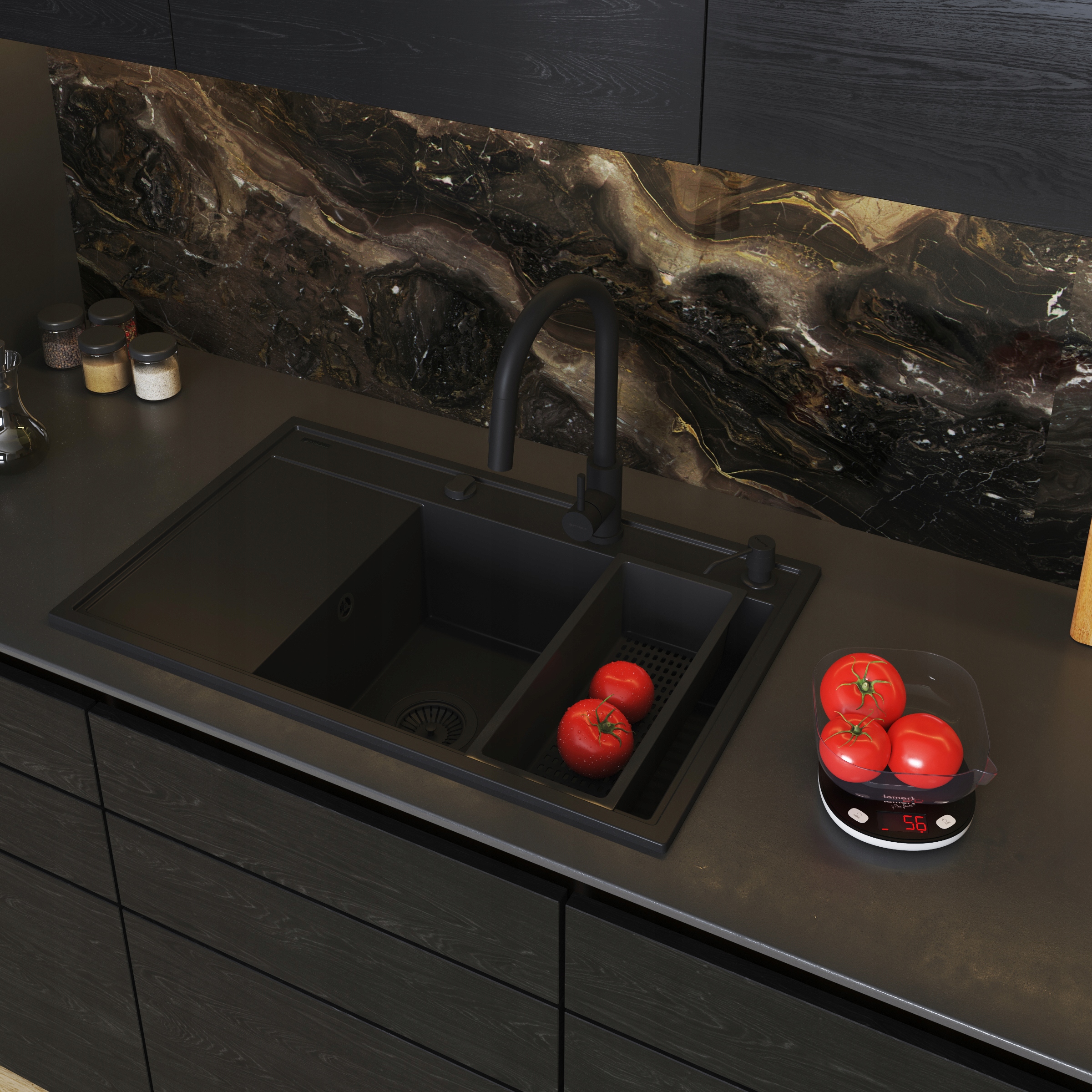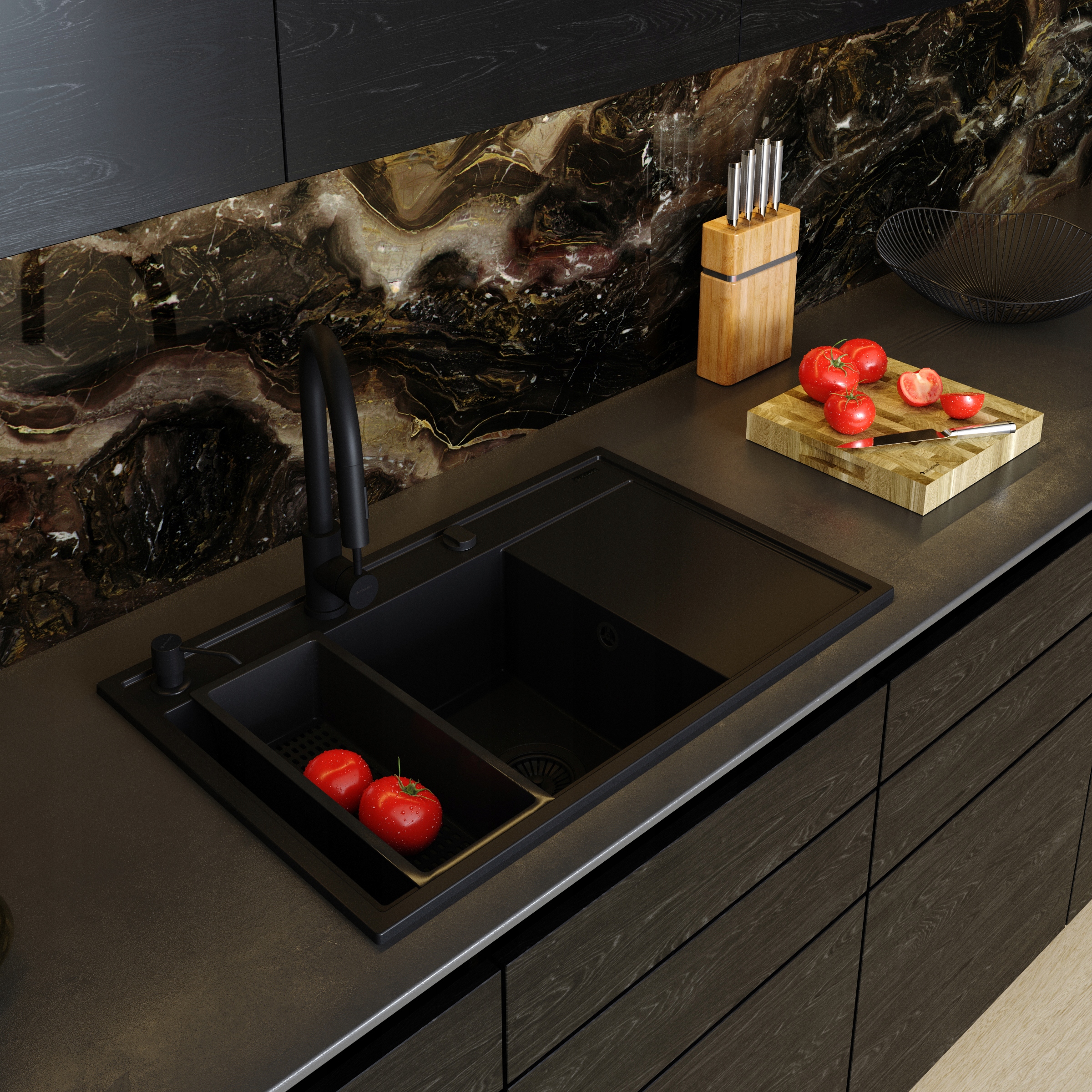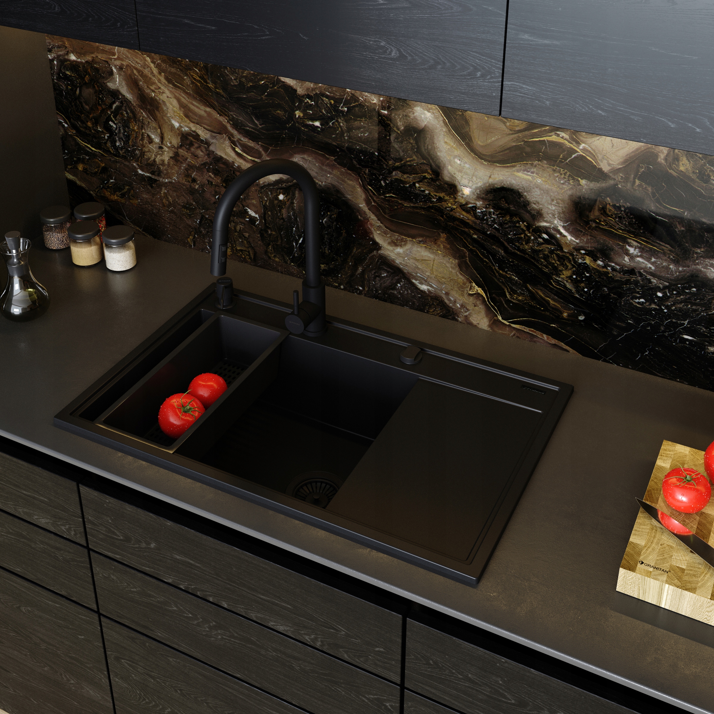 Având dimensiunile și forma, insertul BLACK EDITION se potrivește modelului Camea 79×50, iar culoarea sa este în armonie cu suprafața chiuvetei și cu alte accesoriide bucătărie din această serie.