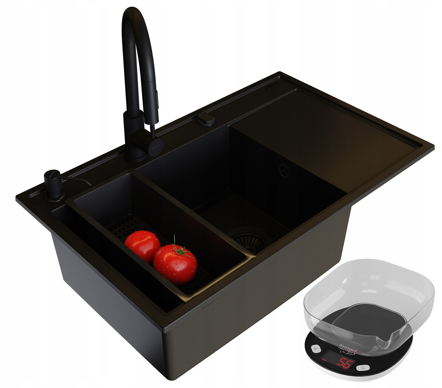 1 CHIUVETĂ DE GRANIT CU O SINGURĂ CUVĂ ȘI SCURGĂTOR CAMEA 79×50VOLCANO (NEGRU MAT) CU CUVĂ STÂNGA