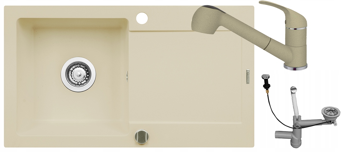 Chiuvetă granit Pyramis Mido vanilie Sifon automat 1 cuvă