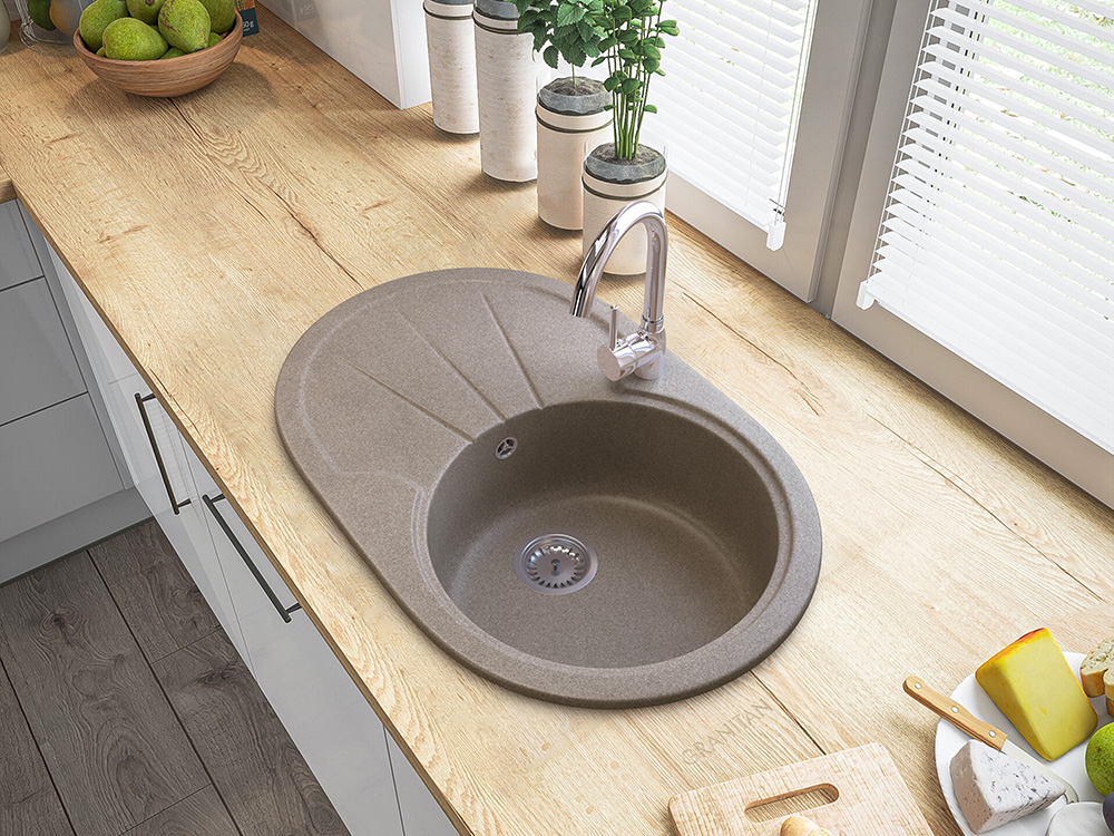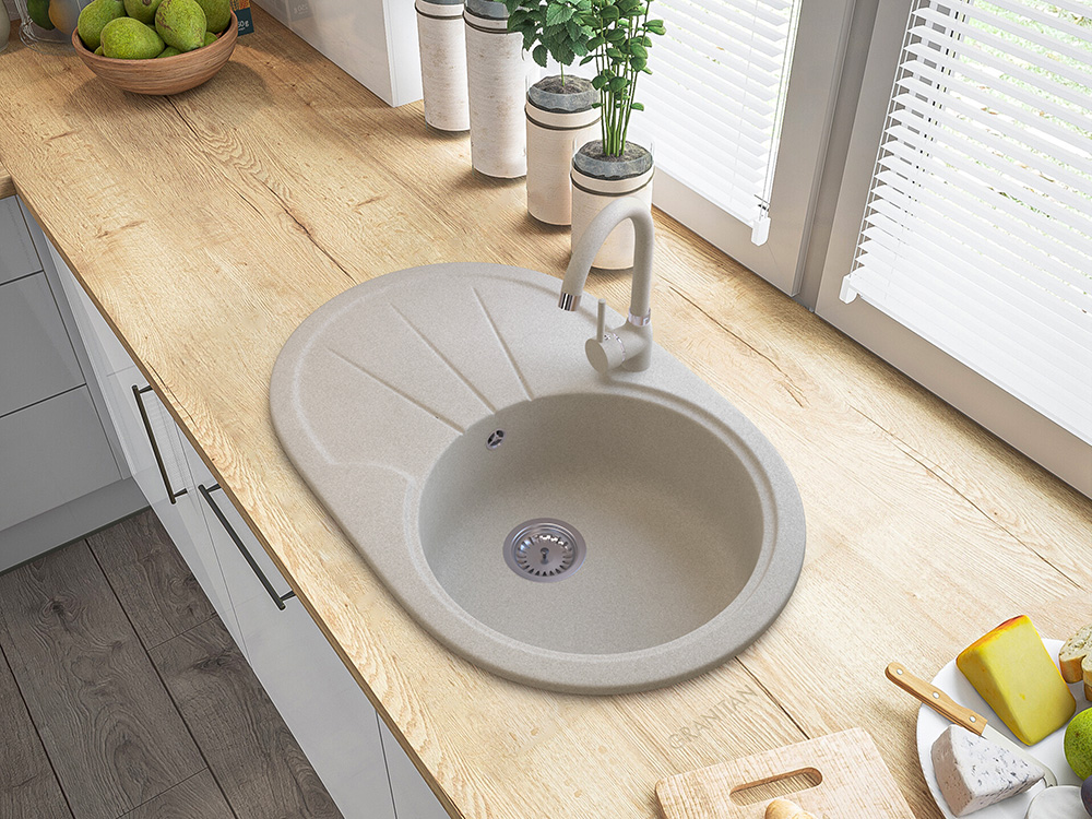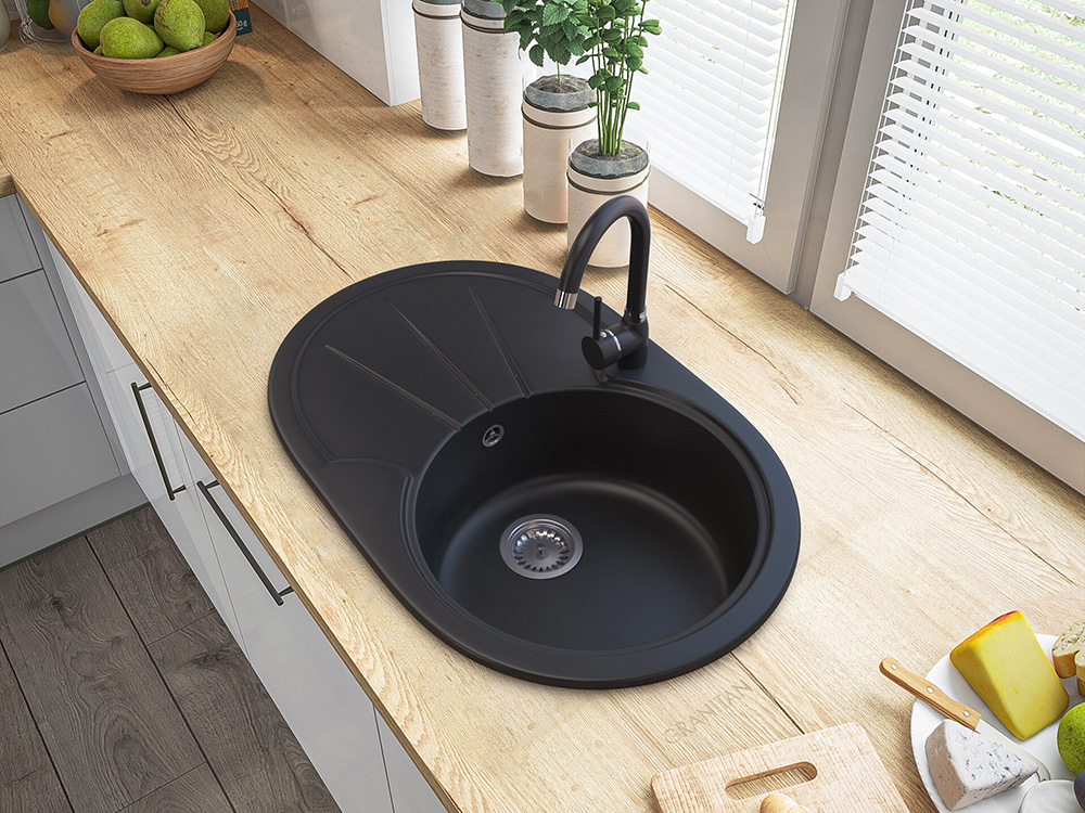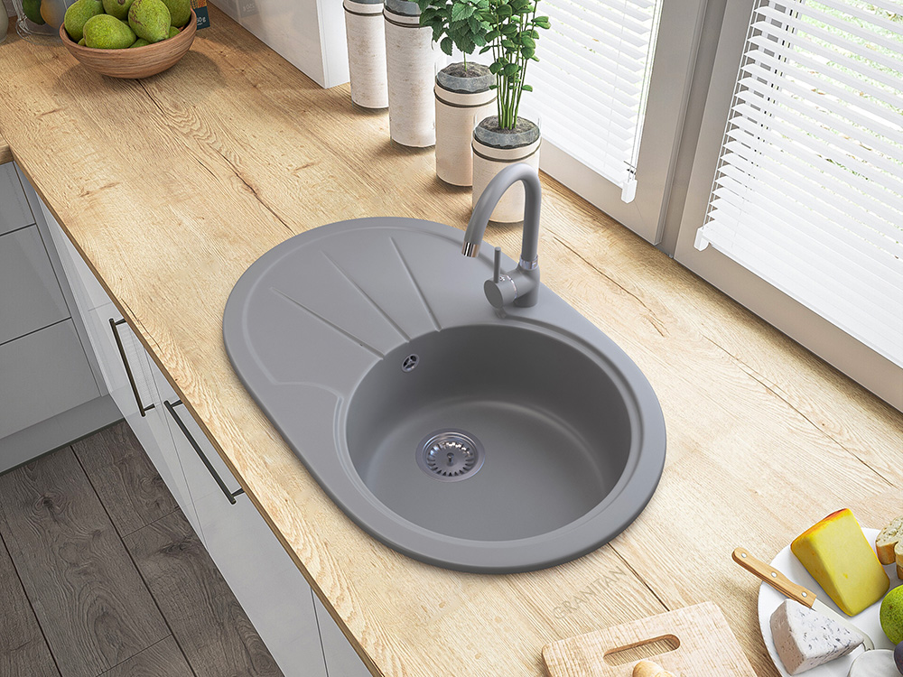 Chiuveta din granit este un produs a cărui design atemporal și aspect universal oferă nenumărate posibilități de amenajare. Forma și dimensiuneasa permit integrarea perfectă în spațiul bucătăriei, pentru a vă bucura pe deplin de toate funcționalitățile sale. Proporțiile armonioase nu aglomerează spațiul, iar forma minimalistă adaugă o notă elegantă bucătăriei. Design-ul modelului ia în calcul o cuvă cât mai mare posibil care asigură un confort ridicat în utilizarea zilnică. Personalizare individuală permite adăugarea de găuri suplimentare pentru dozatorul de lichid sau rotița de sifon automat. Astfel, putem crea un set care să satisfacă cerințele fiecărui client.