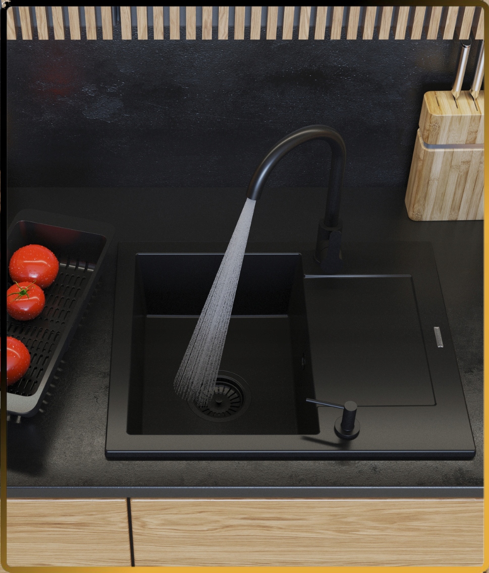 ✅ Chiuveta din granit BELLO este combinarea design-ului modern cu durabilitatea excepțională. Dimensiunile sale fac ca să se integreze perfect atât în bucătării spațioase, cât și în spații de tip open-space mai mici.