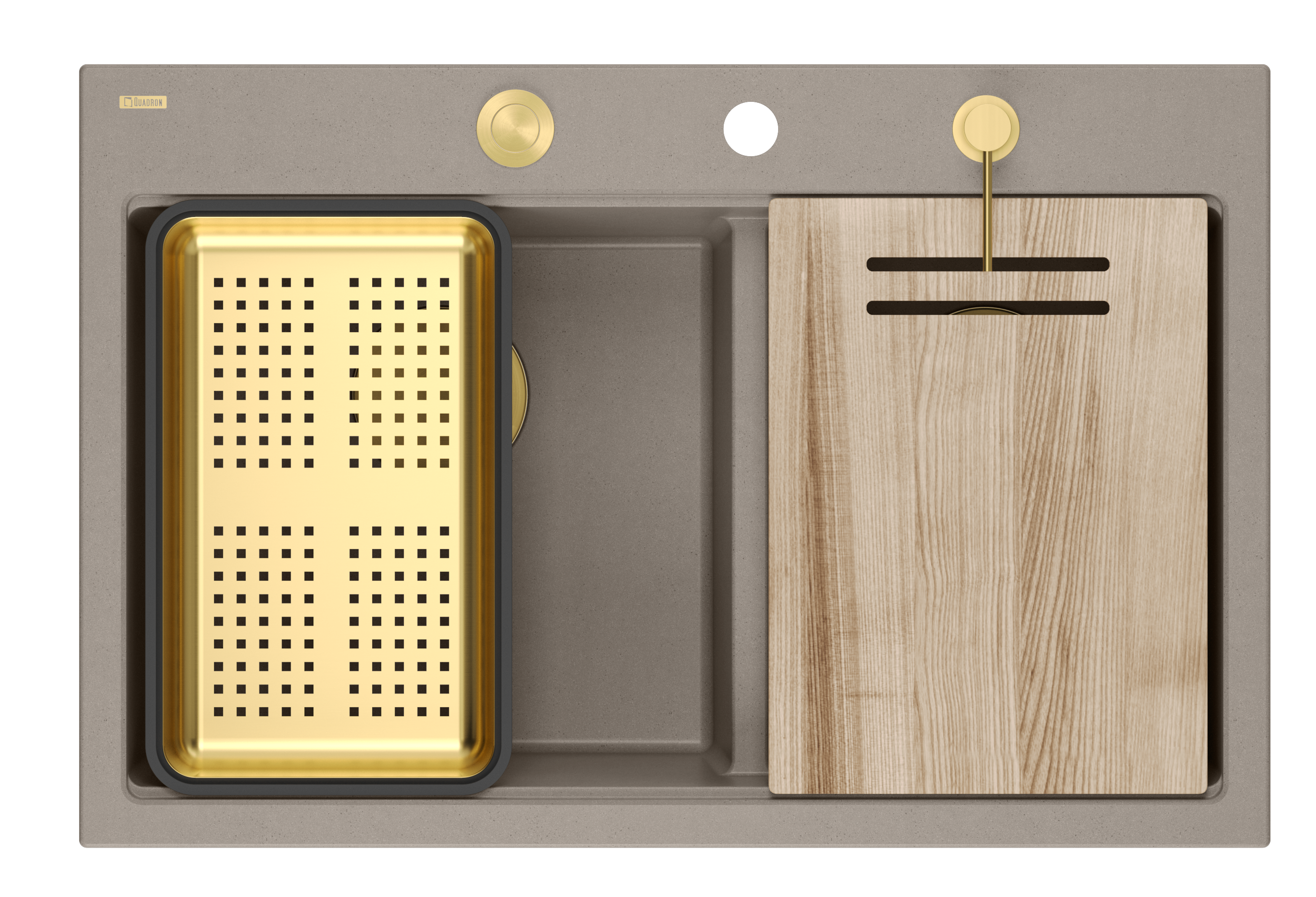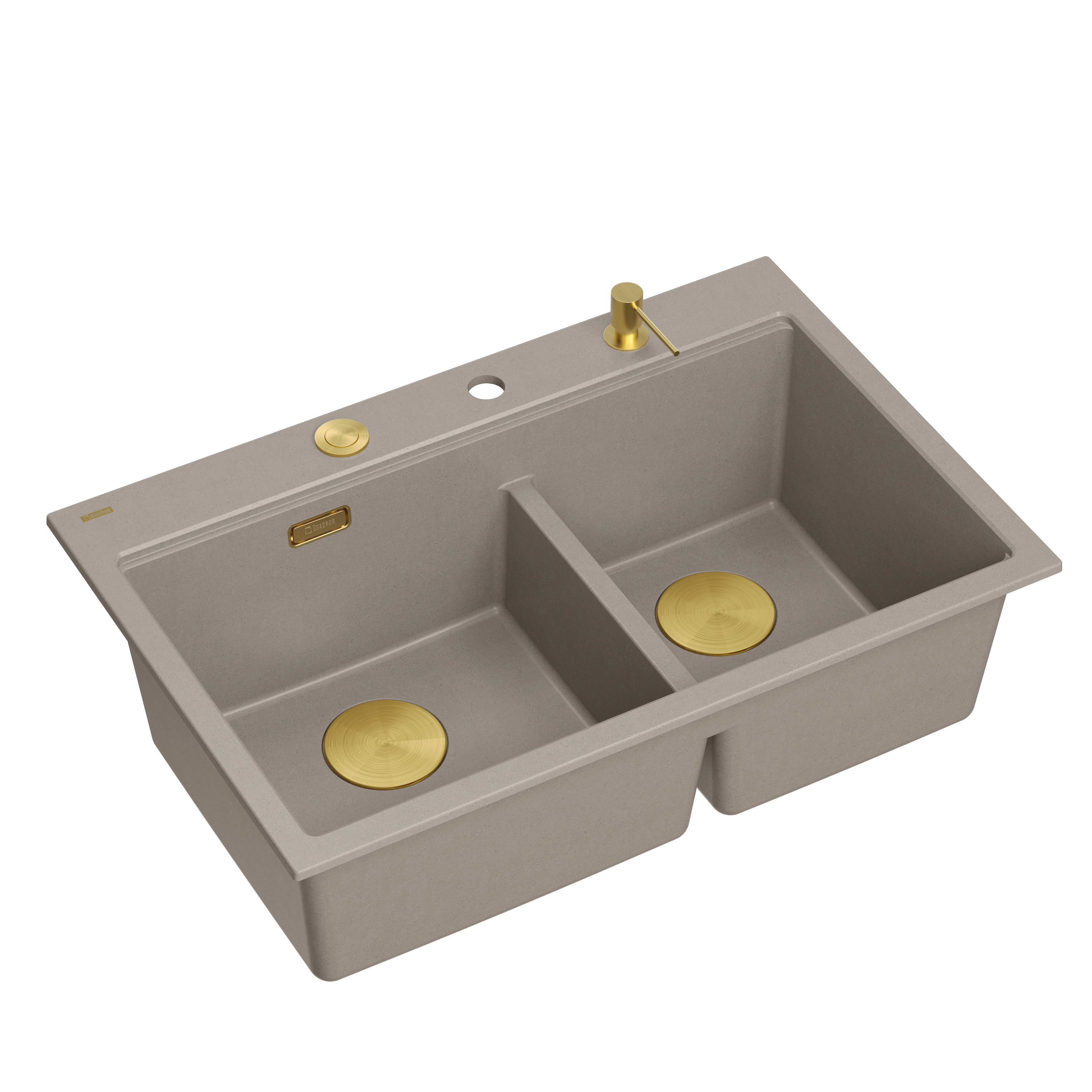 În varianta cu robinete acoperite cu strat PVD, setul este îmbogățit cu o placă solidă și o tăviță de scurgere, care extind considerabil spațiul de lucru și sporesc confortul utilizării. Scurgerea automată Push-2-Open reprezintă un avantaj suplimentar, permițând golirea cuvei fără a fi nevoie să vă udați mâinile, sporind astfel confortul și igiena în timpul activităților zilnice.