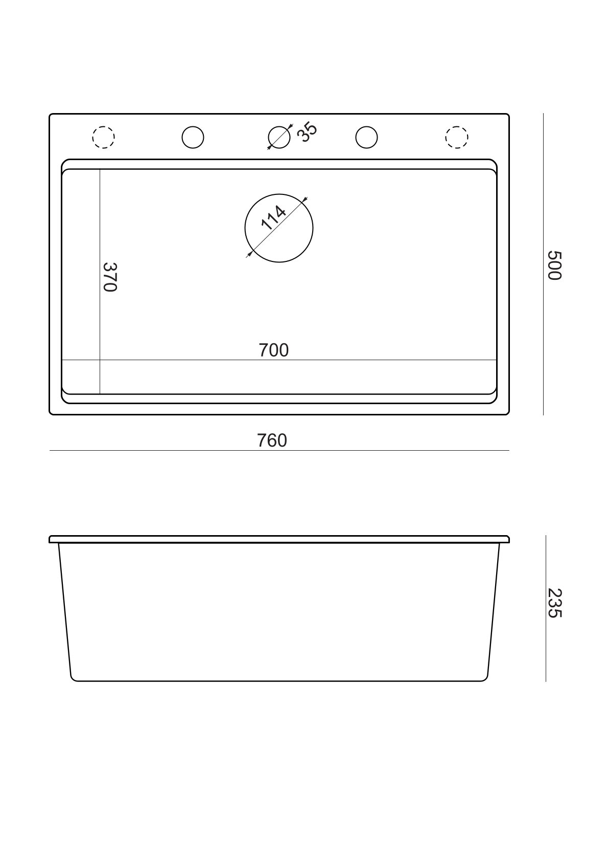 - inserție din oțel pentru scurgere cu dimensiunea 38 x 23 x 6 cm