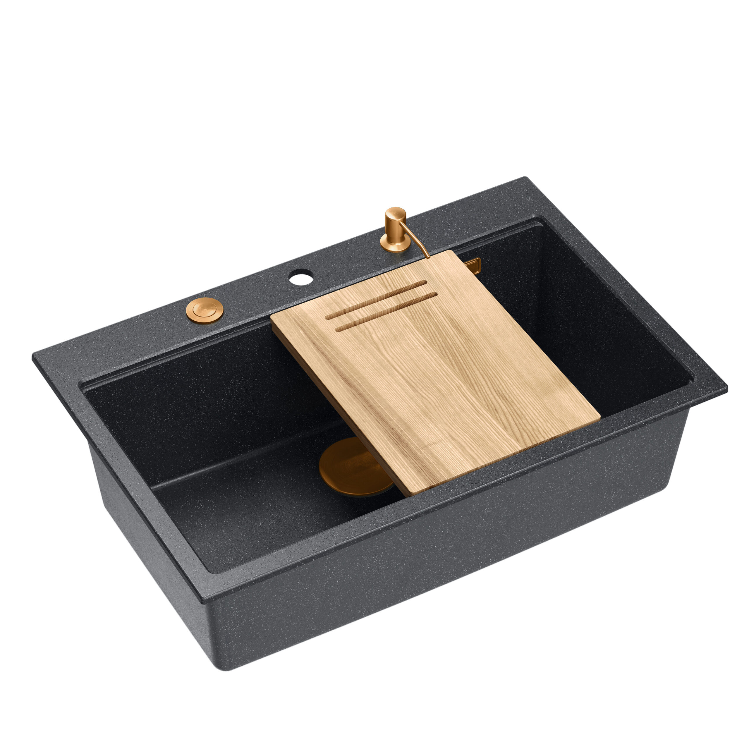 Chiuvetă de granit MARC cu 1 cuvă 76x50 cm negru sifon la alegere