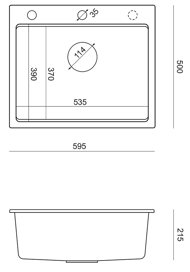 KURT 110 este o chiuvetă din granit cu o singură cuvă extrem de încăpătoare, deși dulapul necesar este de doar 60 cm, adică dimensiunea cea mai populară pentru dulapurile de bucătărie.