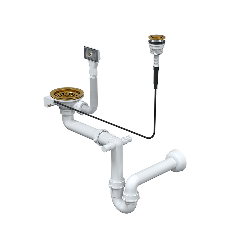 Setul include un sifon automat care economisește spațiu, cu posibilitatea conectării la mașina de spălat vase/rufe.