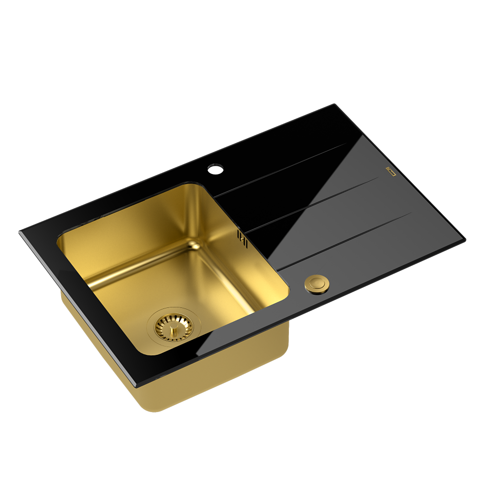 Ford 111 HardQ cameră oțel PVD auriu cu blat negru din sticlă