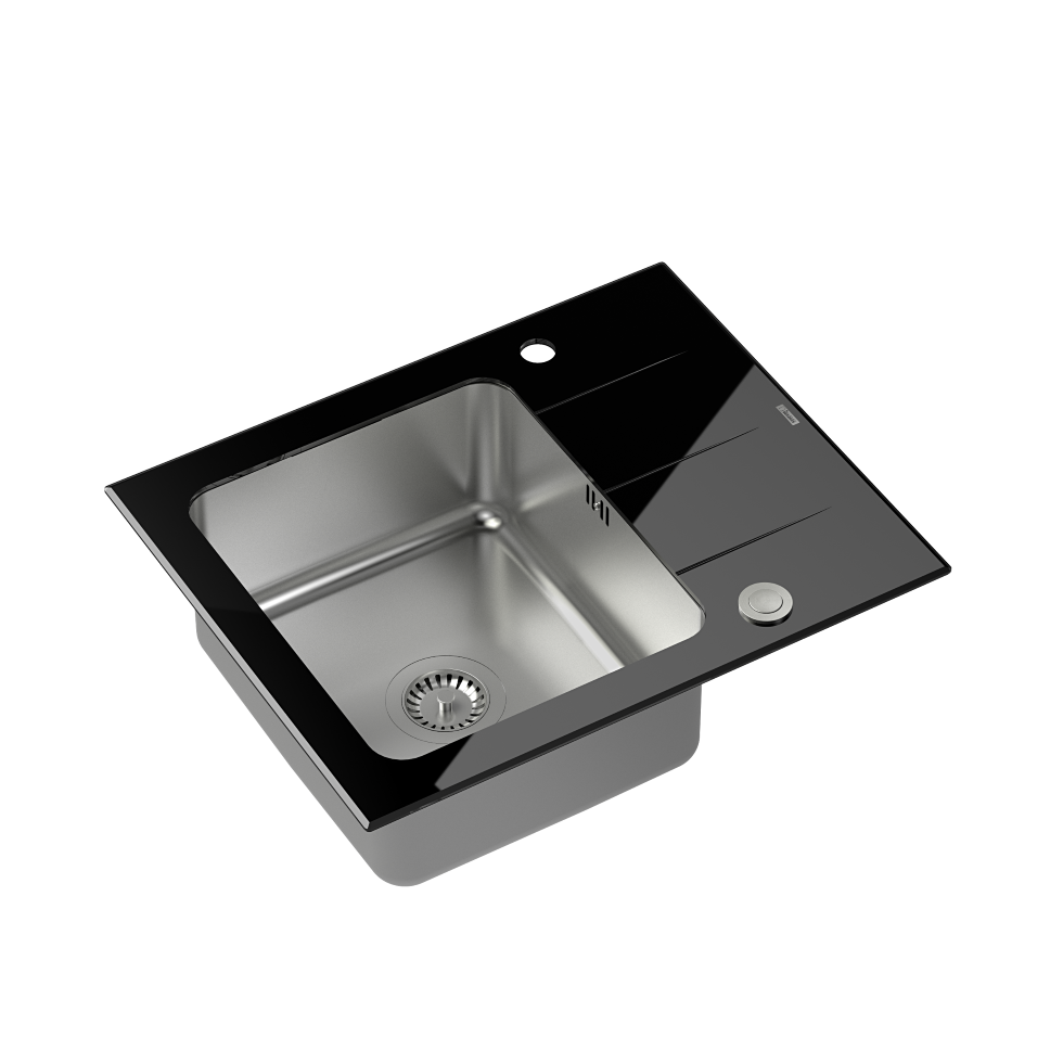 Ford 116 HardQ cuva de oțel cu blat de sticlă neagră