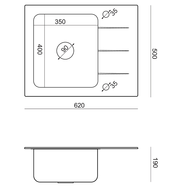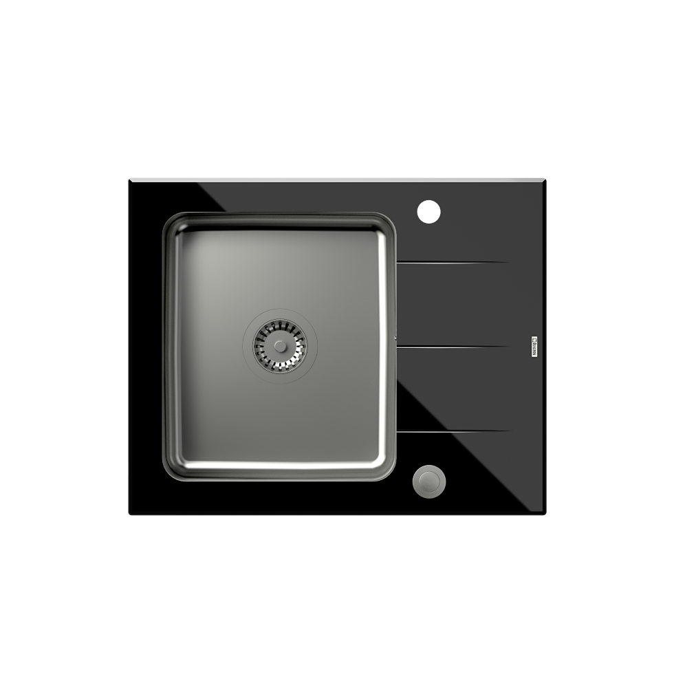 Ford 116 HardQ cuva de oțel cu blat de sticlă neagră