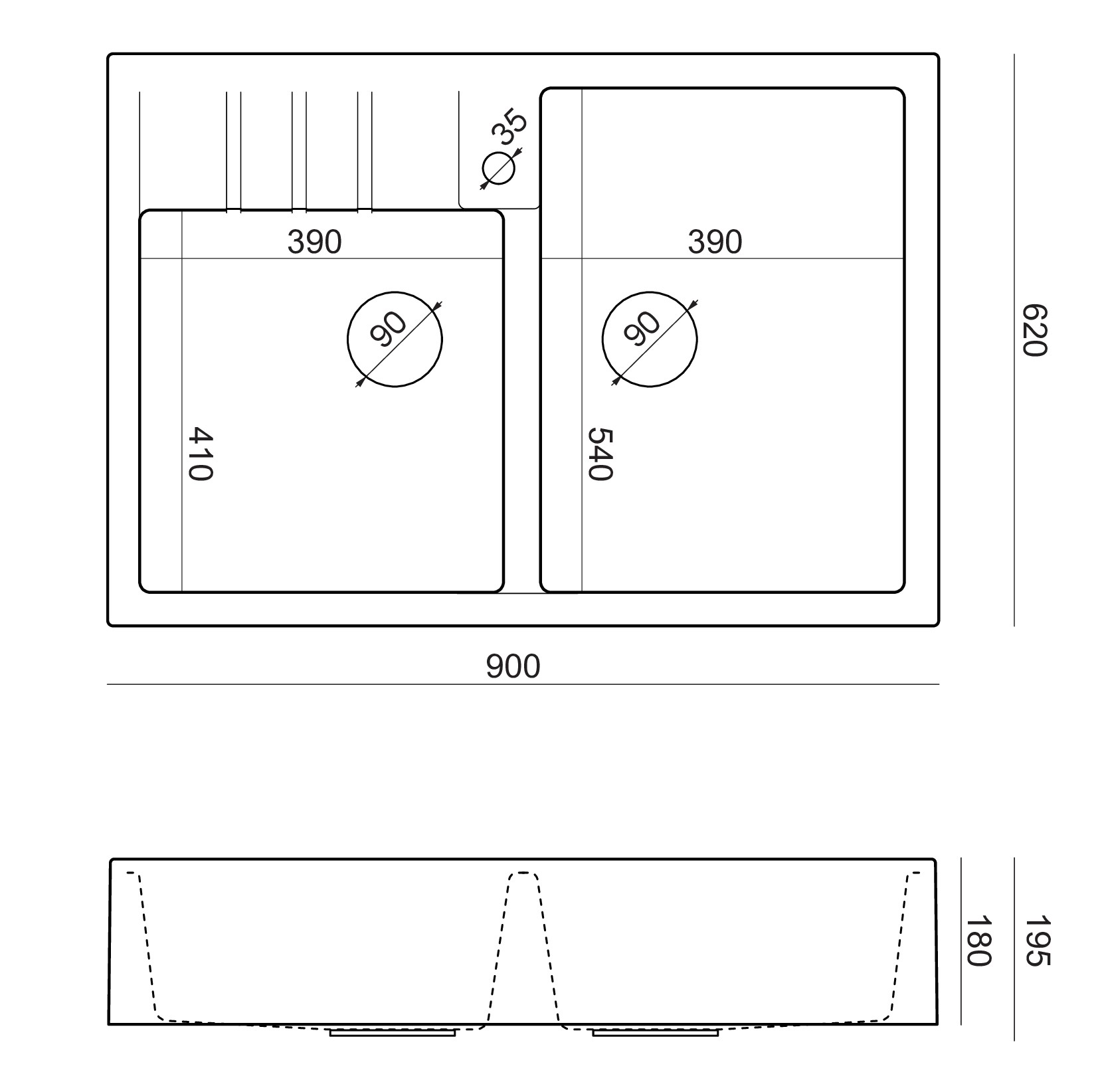 Modelul este prevăzut cu un șorț expus, vizibil, care este perfect atât ca element decorativ, cât și ca o soluție extrem de funcțională protejează împotriva stropirii apei.