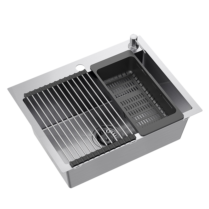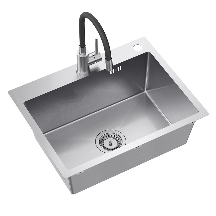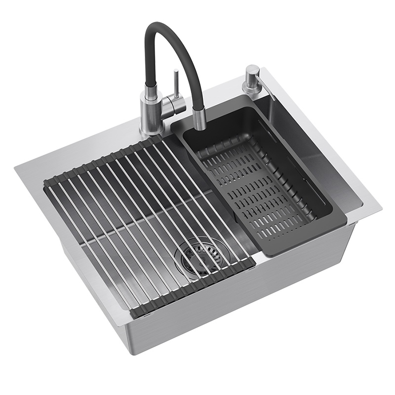 QUADRON LUKE 110 WORKSTATION chiuvetă din oțel inoxidabil (58x45x20) cu sifon 1 compartiment fără gaură + Qmata + Inserție + Dozator + Tăviță + baterie cu duză flexibilă din oțel