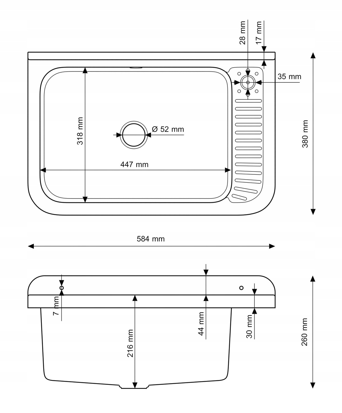 Chiuveta a fost fabricată din polipropilenă, un material care se remarcă prin rezistență chimică ridicată la o varietate de compuși și substanțe – în special, are o neutralitate mare în contact cu acizi, baze sau solvenți. Materialul nu absoarbe apă, fiind astfel ideal pentru funcția sa tehnică.