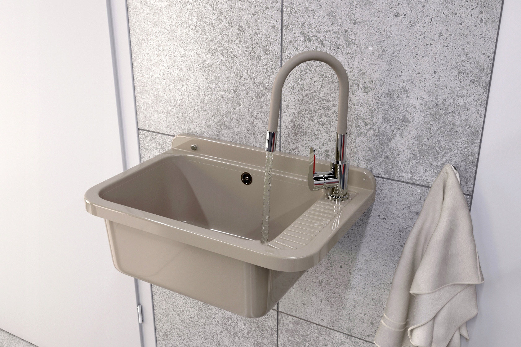 Chiuveta a fost fabricată din polipropilenă, un material care se remarcă prin rezistență chimică ridicată la o varietate de compuși și substanțe – în special, are o neutralitate mare în contact cu acizi, baze sau solvenți. Materialul nu absoarbe apă, fiind astfel ideal pentru funcția sa tehnică.