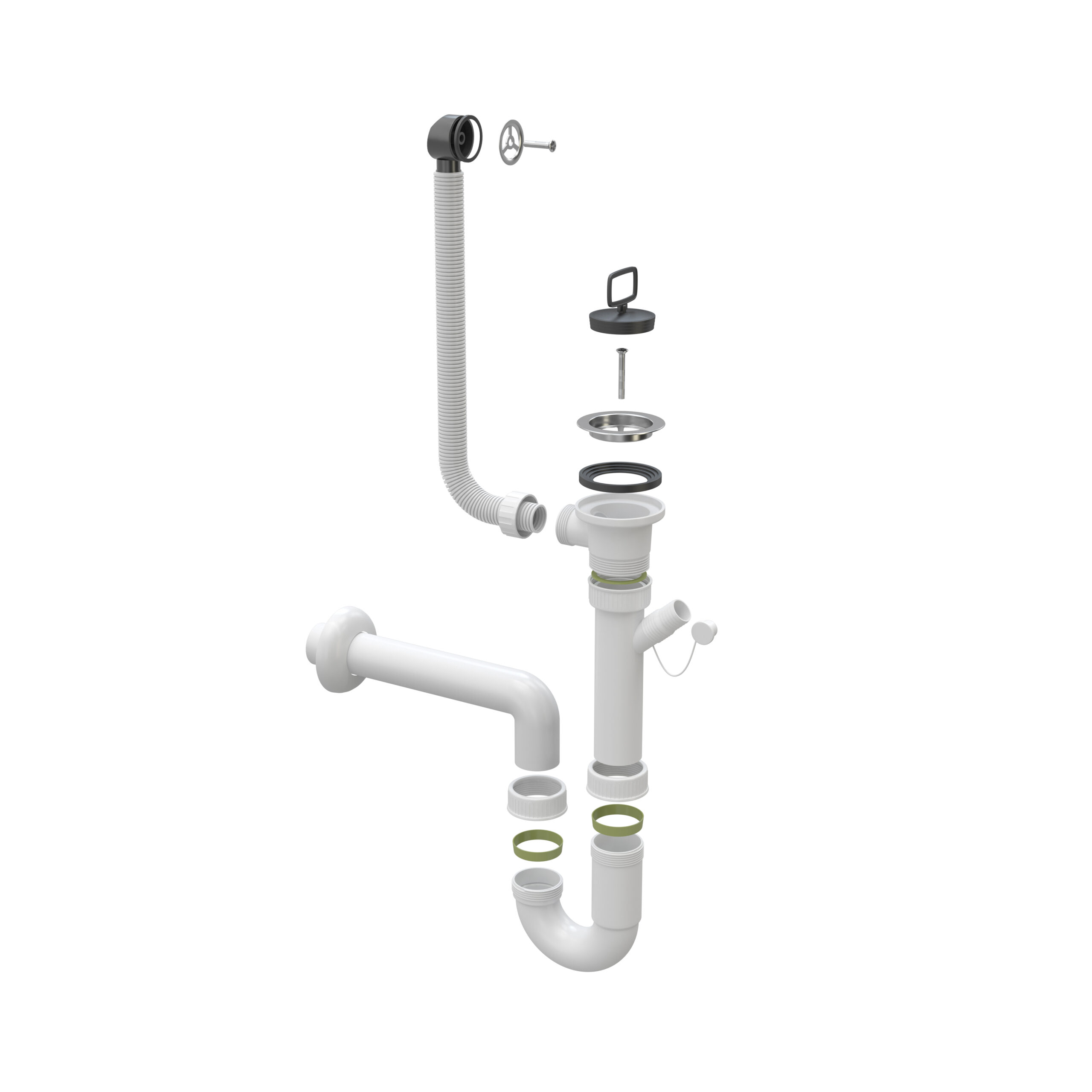Include tot ceea ce este necesar pentru montaj: sifon, set de montaj