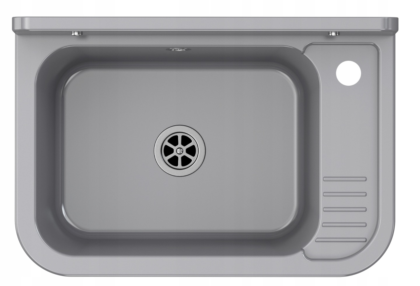 Chiuveta industrială are din fabricăgaurit un orificiu destinat bateriei.