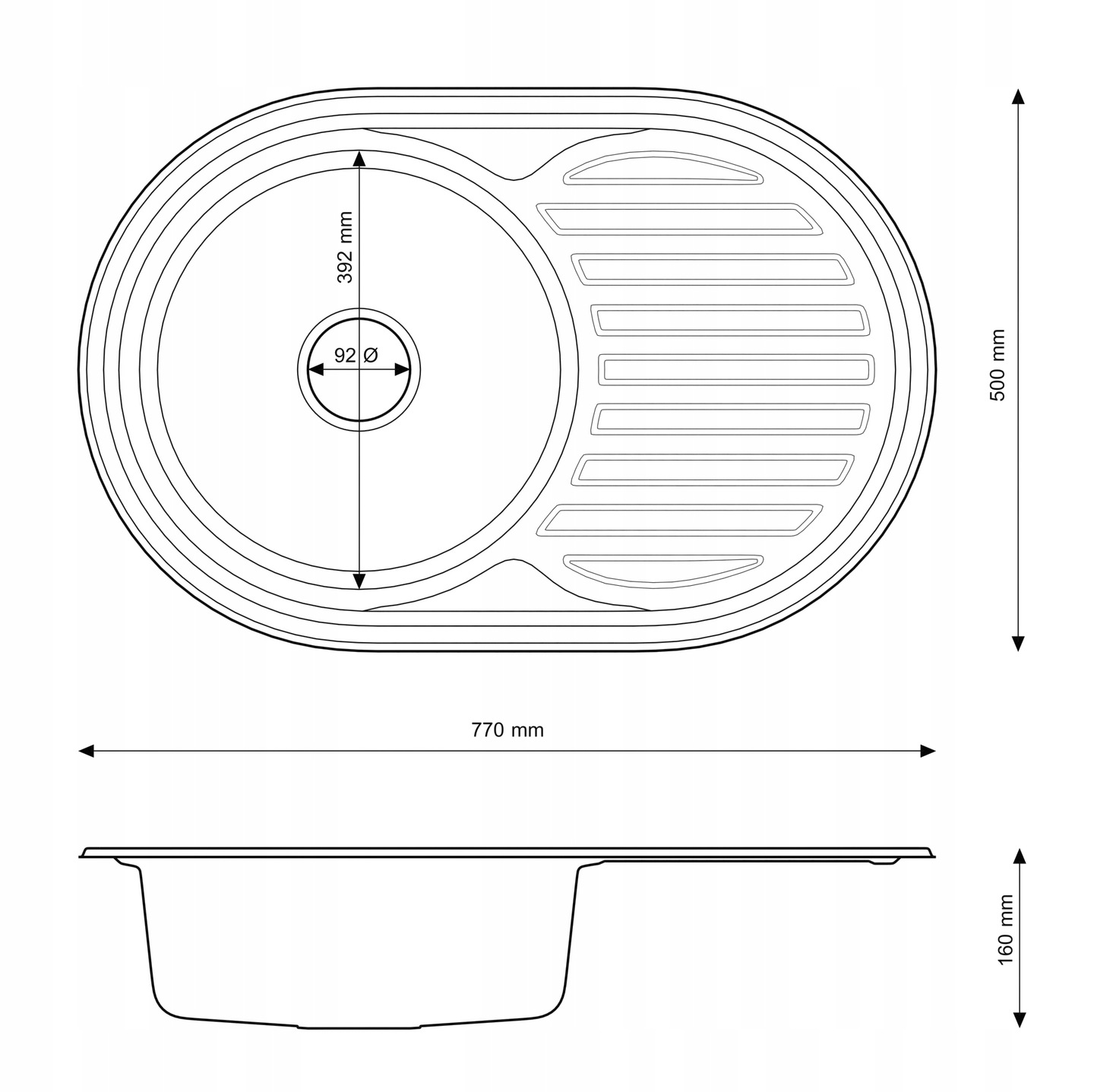 Forma clasică a chiuvetei a fost îmbunătățită cu un drenaj lateral confortabil și, mai presus de toate, spațios, care facilitează spălarea zilnică și îmbunătățește confortul de lucru în bucătărie.
