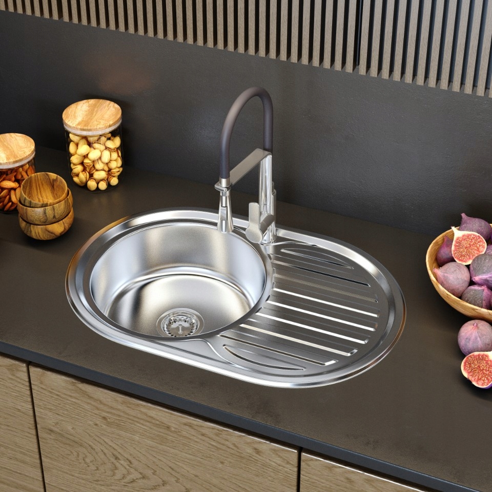 Forma clasică a chiuvetei a fost îmbunătățită cu un drenaj lateral confortabil și, mai presus de toate, spațios, care facilitează spălarea zilnică și îmbunătățește confortul de lucru în bucătărie.