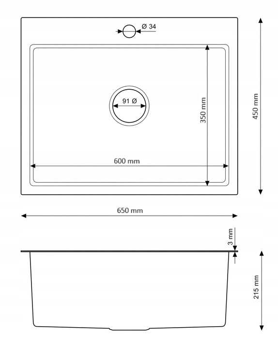 Chiuvetă din oțel cu o singură cameră destinată montării deasupra blatului. Chiuveta dispune de un orificiu (acoperit cu un capac estetic în culoarea chiuvetei) destinat pentru bateria de bucătărie.